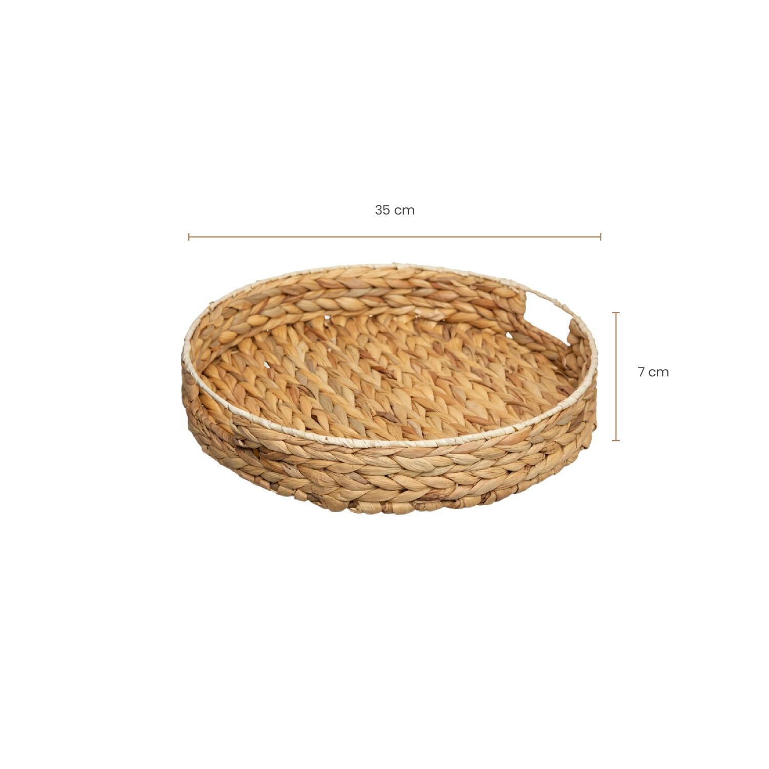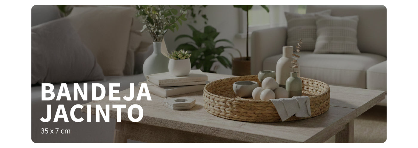 Transforma cualquier rincón de tu casa con la calidez y el estilo natural de la bandeja redonda Jacynte. Su diseño en mimbre tejido no solo es funcional para servir un aperitivo o tu café de la mañana, sino que también se convierte en una pieza de decoración que aporta calma y un toque bohemio a tu living, comedor o terraza. Es el detalle perfecto para la organización de tus objetos favoritos con encanto.