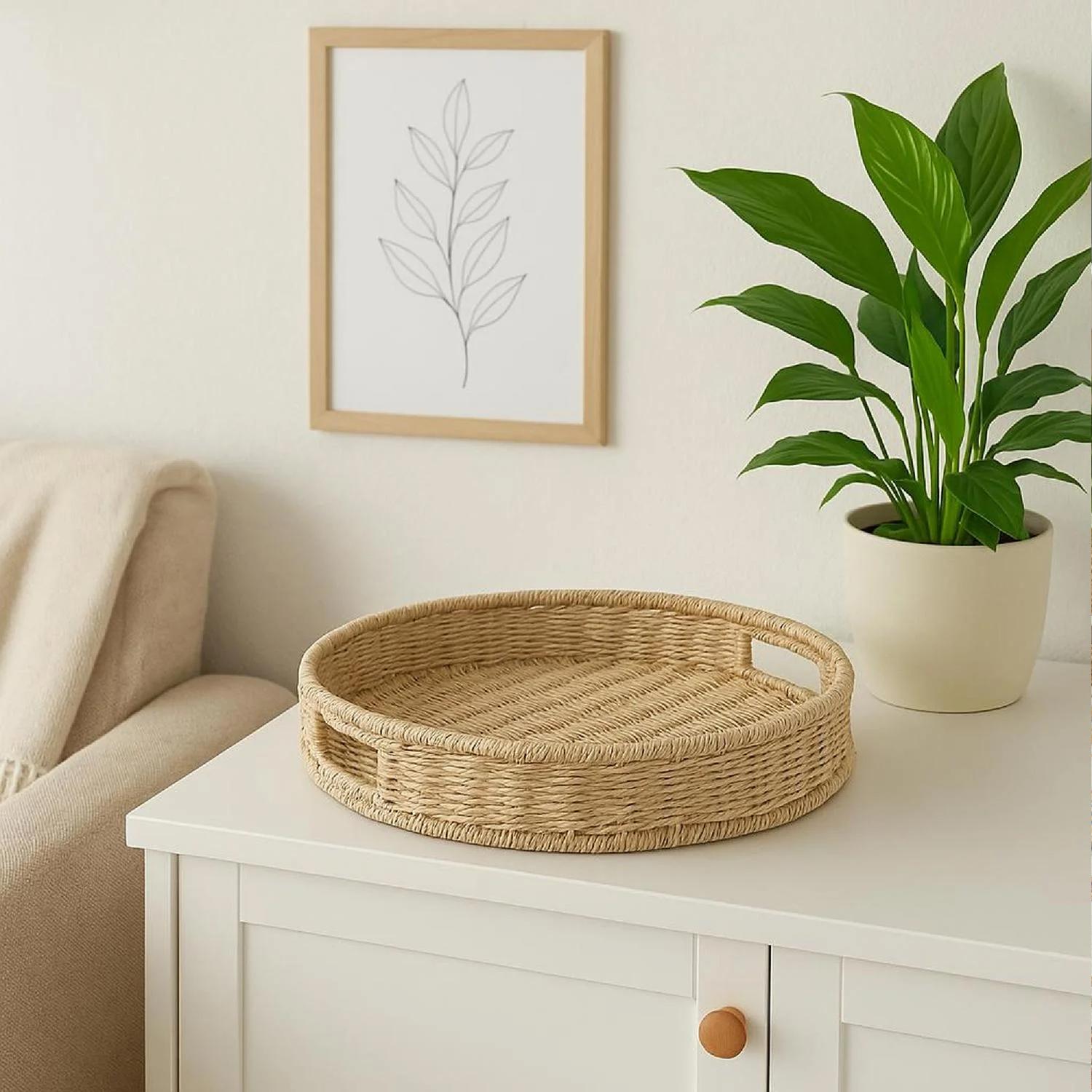 Añade un toque de calidez y estilo natural a cualquier rincón de tu casa con la bandeja redonda Kord de 5Five. Su diseño en mimbre tejido no solo es estéticamente agradable, sino también increíblemente versátil. Úsala para servir el desayuno, organizar tus cosméticos en el baño o como base para un centro de mesa en el living. Es el detalle que transforma un espacio común en un lugar acogedor.