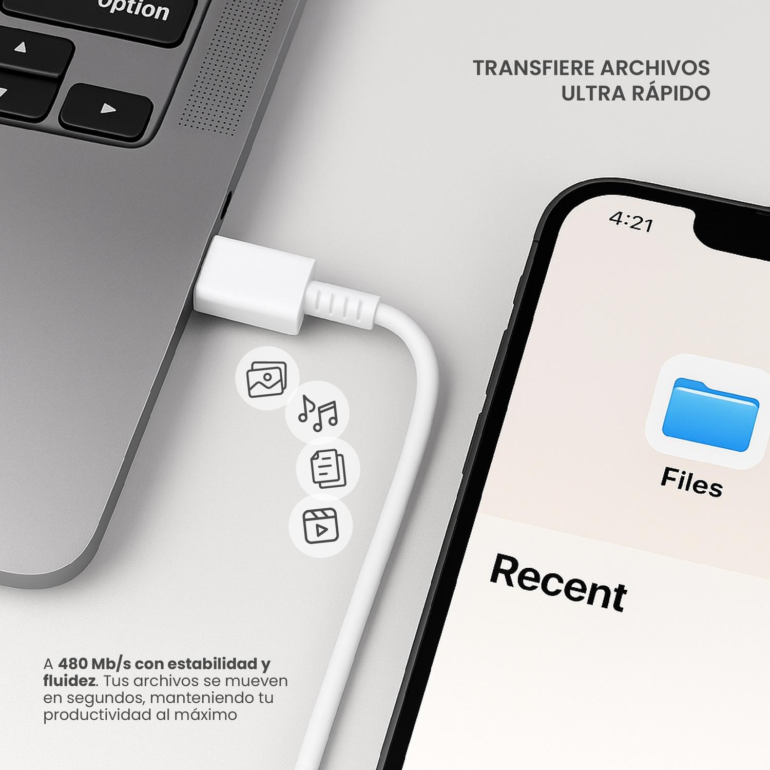 Su diseño en un elegante color blanco y su material de alta calidad no solo garantizan una carga segura, sino también una durabilidad excepcional. Es el compañero ideal para tus viajes y tu día a día, fácil de transportar y siempre listo para mantenerte conectado.