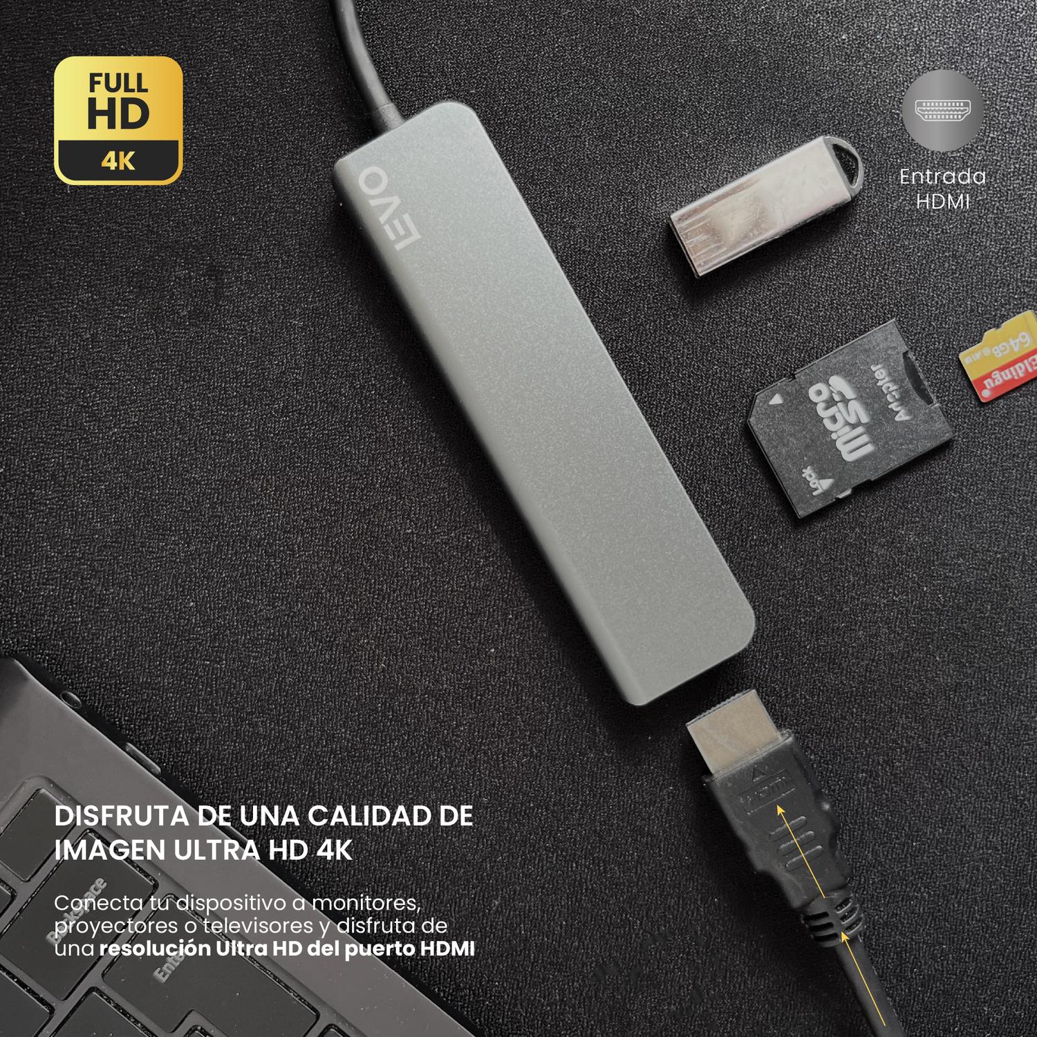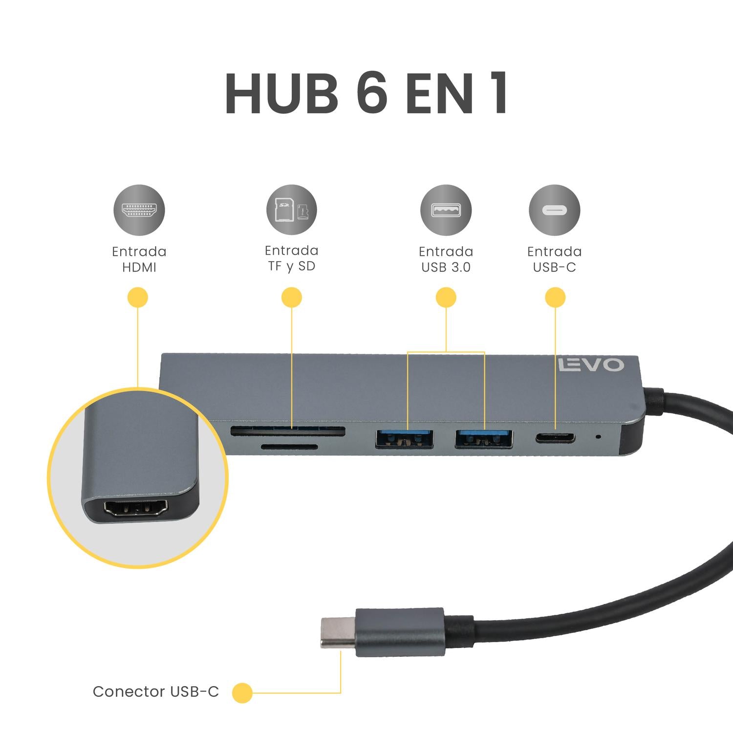 Hub USB-C Adaptador Multipuerto 6 en 1 Macbook Windows LEVO