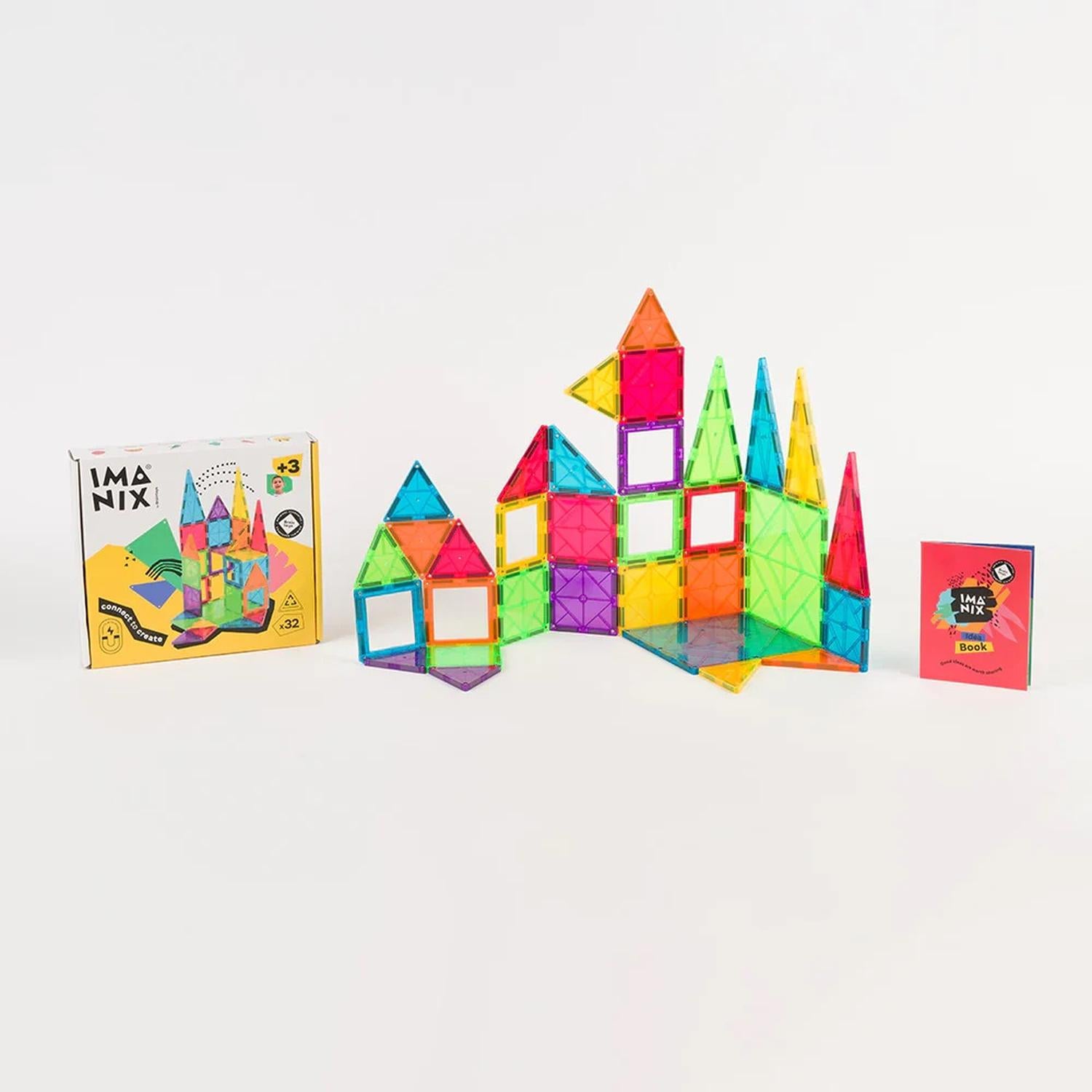 ¡Prepárate para desafiar la gravedad y explorar la emoción de construir y desarmar con las figuras magnéticas y bloques de construcción IMANIX de 32 piezas!