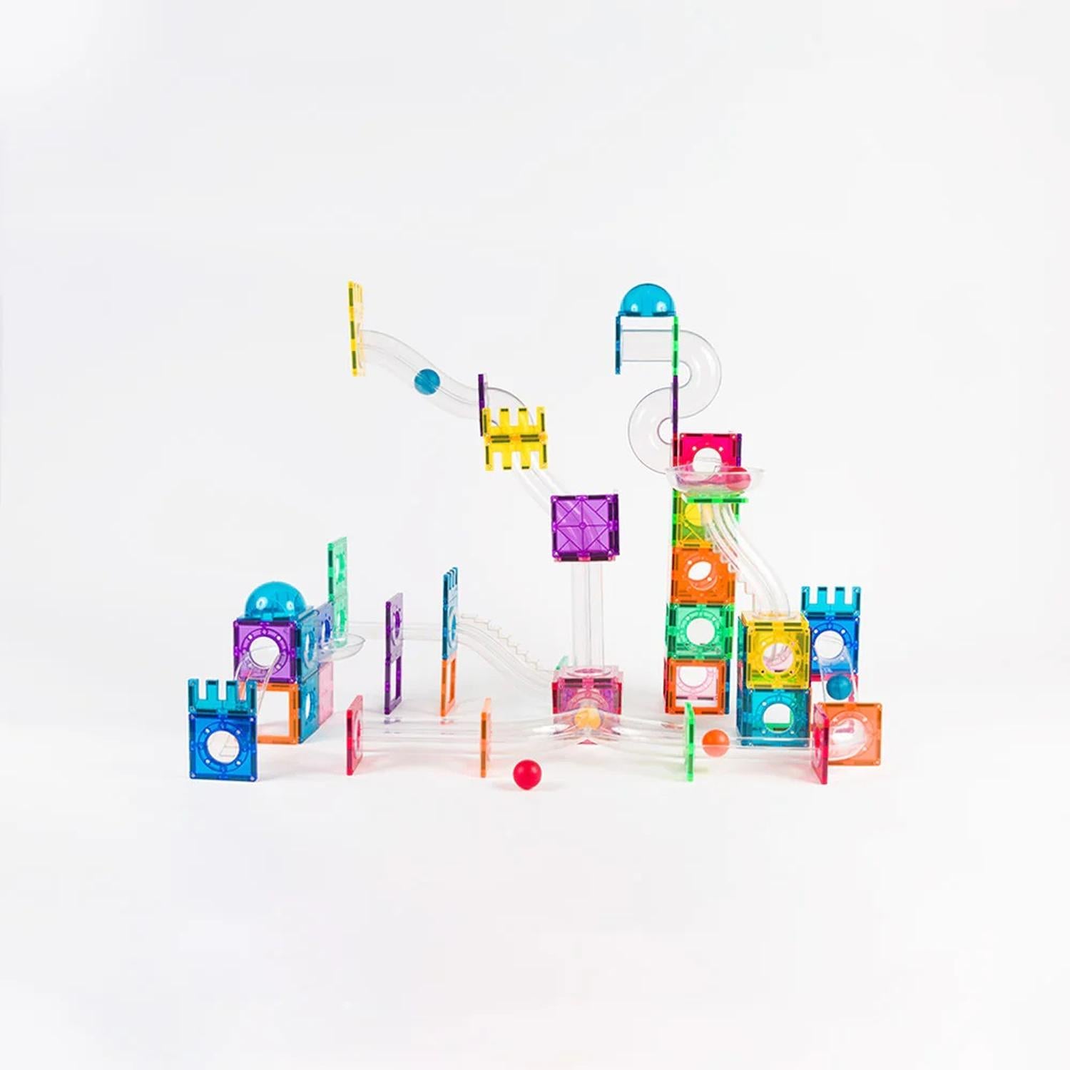 Crea tu propio tobogán y deja que la pelotita ruede sin parar. El juego de bloques de construcción IMANIX Tobogán de 134 piezas es perfecto para ello. Construye un circuito en 2D y 3D con bloques geométricos de diferentes tamaños, colores y curvas.