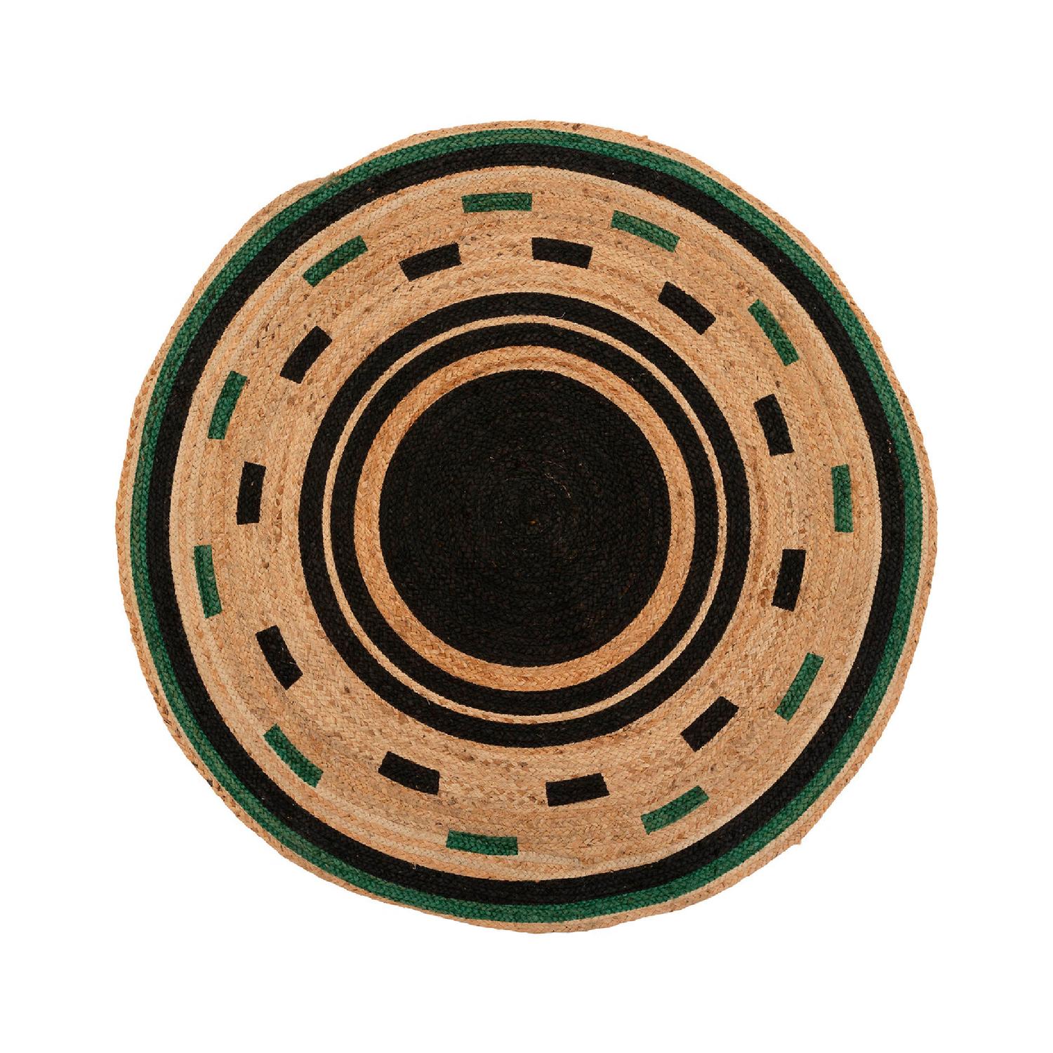 Alfombra de Yute Redonda Borde Negro Verde 118 cm Atmosphera
