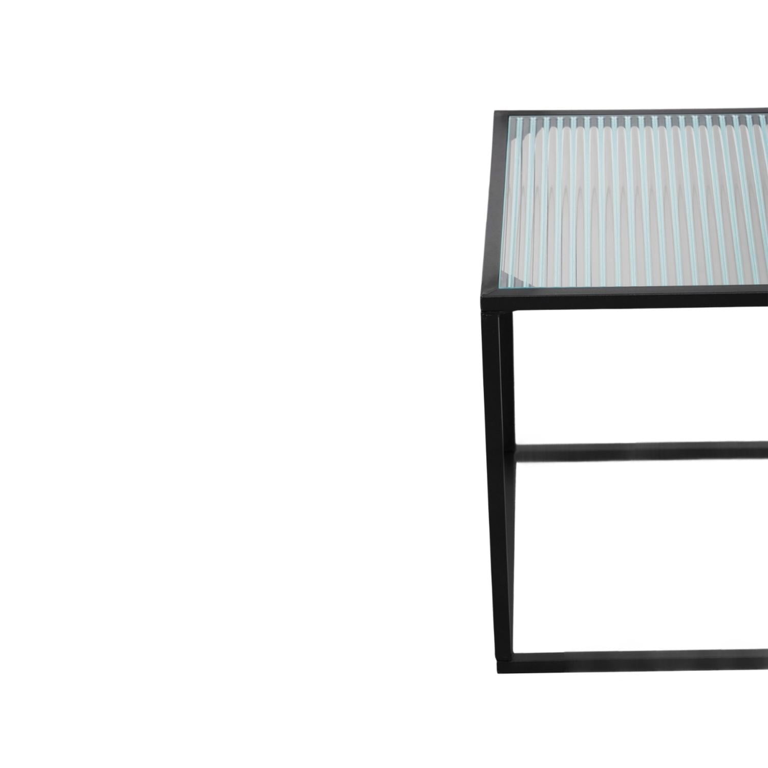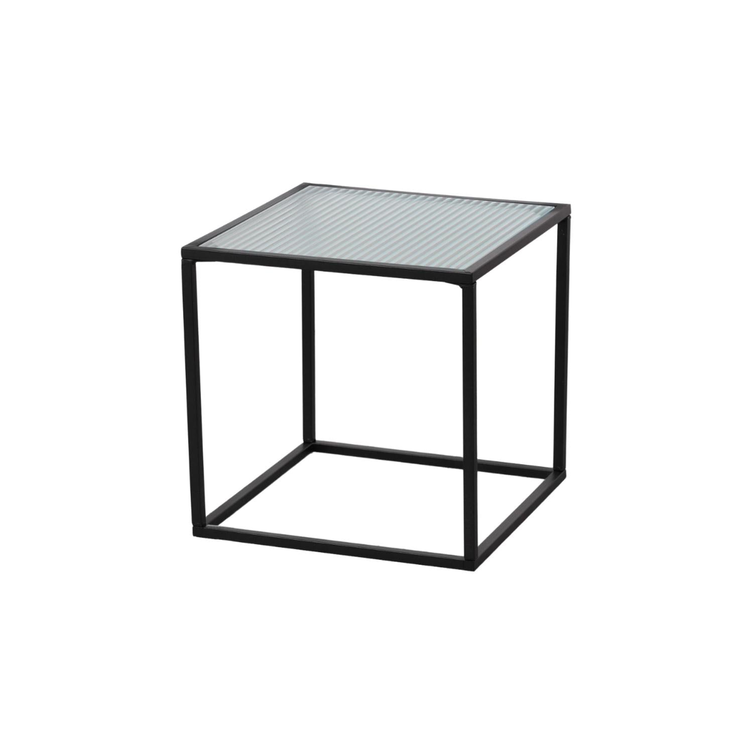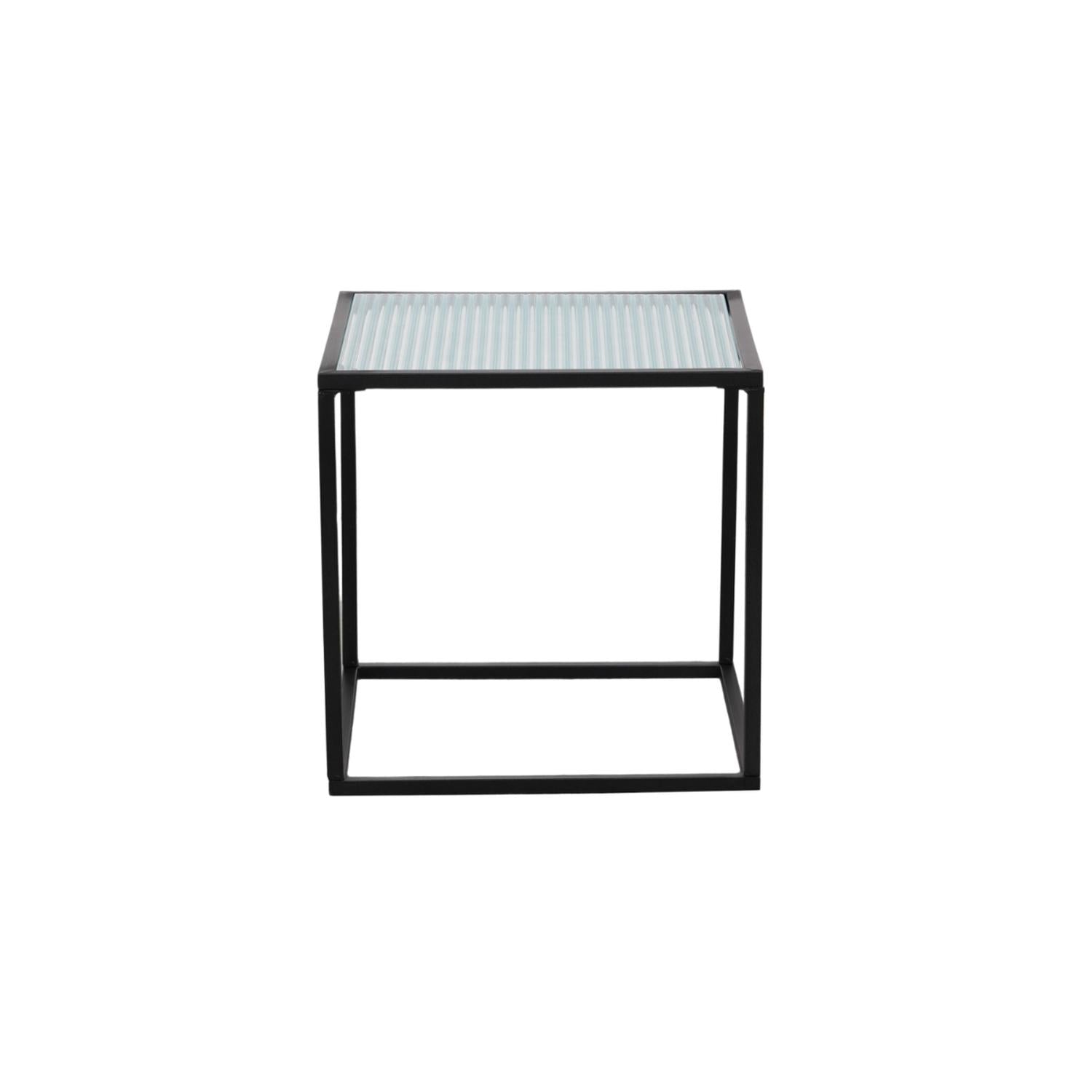 Mesa Metal Negro 35 x 35 x 35 cm de la marca francesa DAY, minimalismo funcional en estado puro. Tablero de vidrio templado sobre estructura de metal con acabado negro mate — lineas limpias que elevan cualquier espacio.