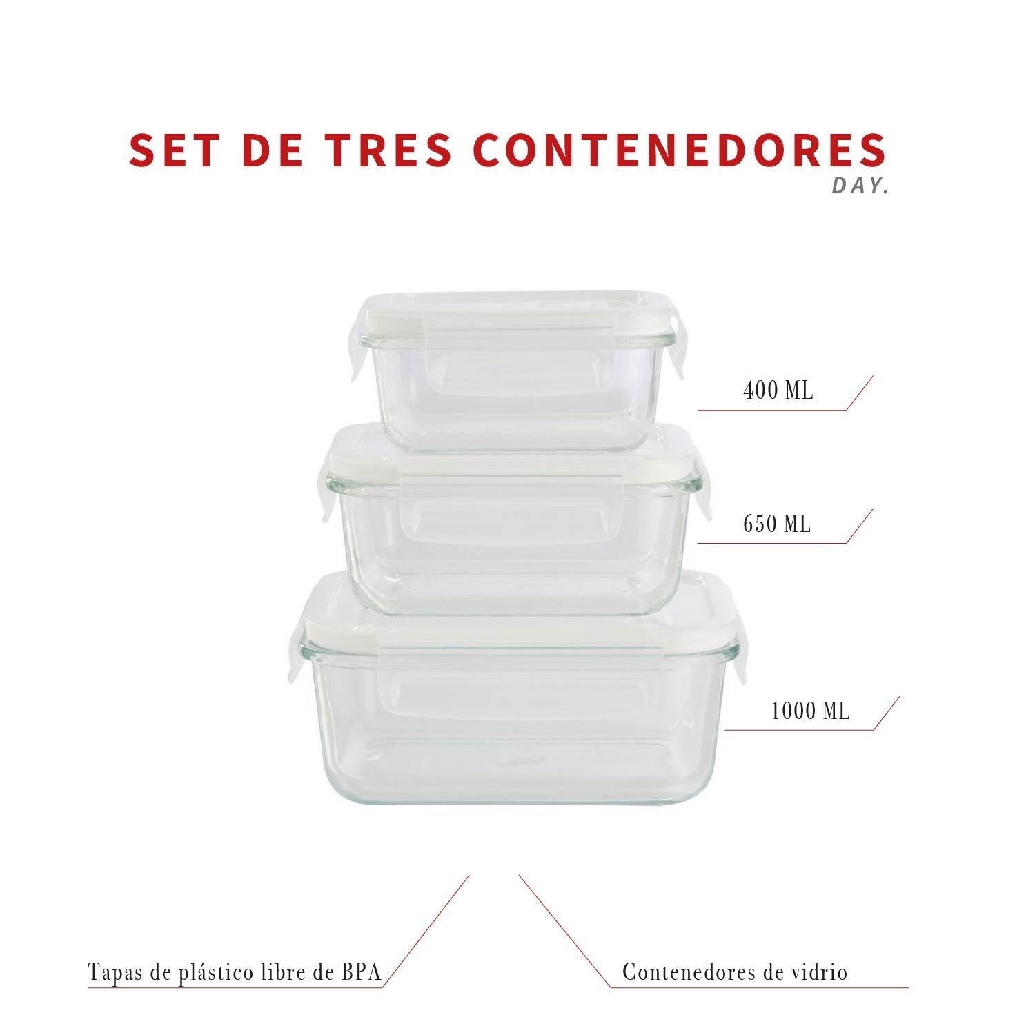 Set de 3 Contenedores de Vidrio Herméticos para Cocina DAY
