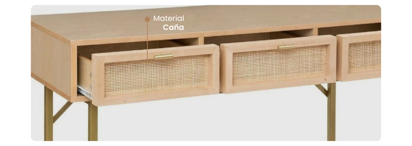 • Materiales: Estructura: Acero pintado | Cubierta: Chapa de abedul | Frente de cajones: Caña