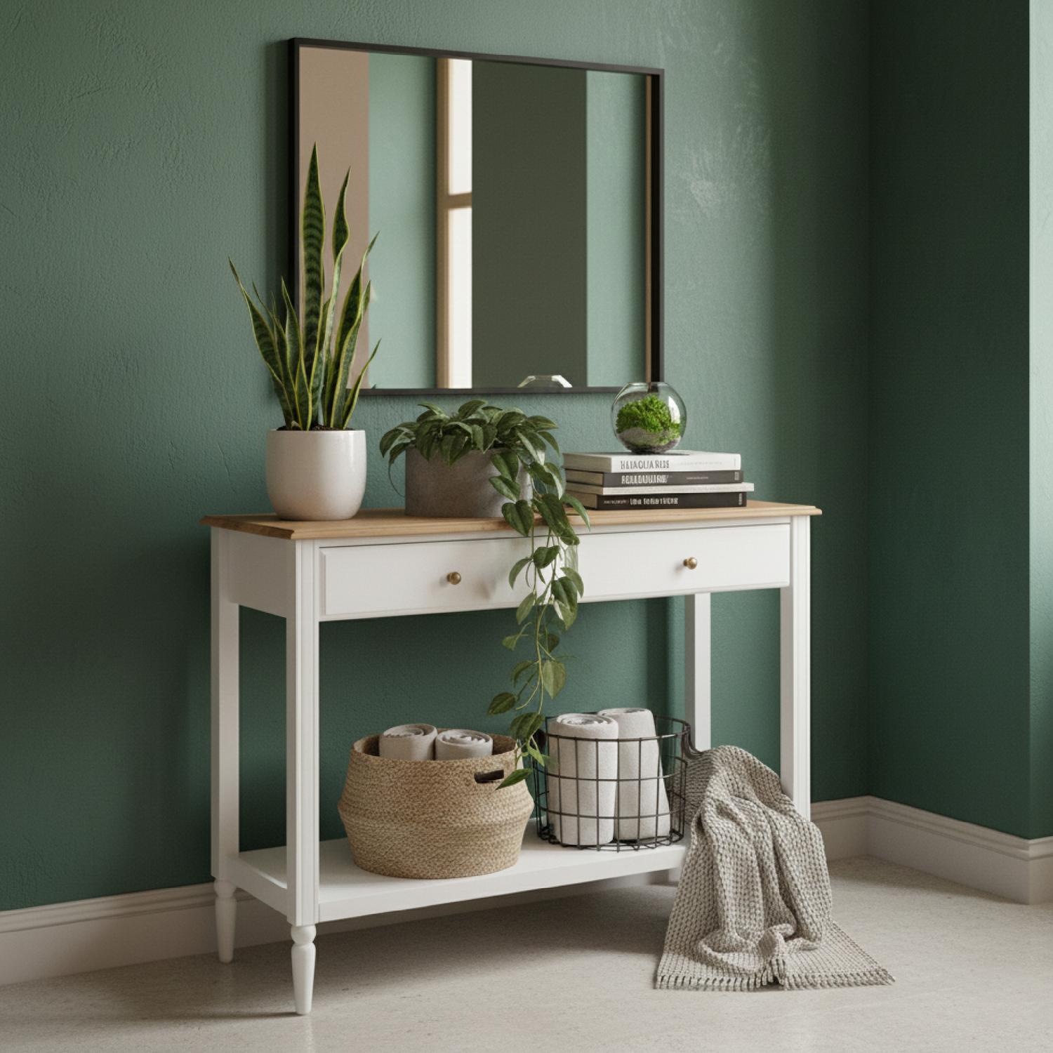 Gracias a sus patas de pino y su acabado en chapa de fresno, esta consola añade un toque cálido y natural al ambiente. Su estética atemporal y proporciones compactas la convierten en la opción perfecta para salas, dormitorios o recibidores que buscan un aire sofisticado sin recargar el espacio.