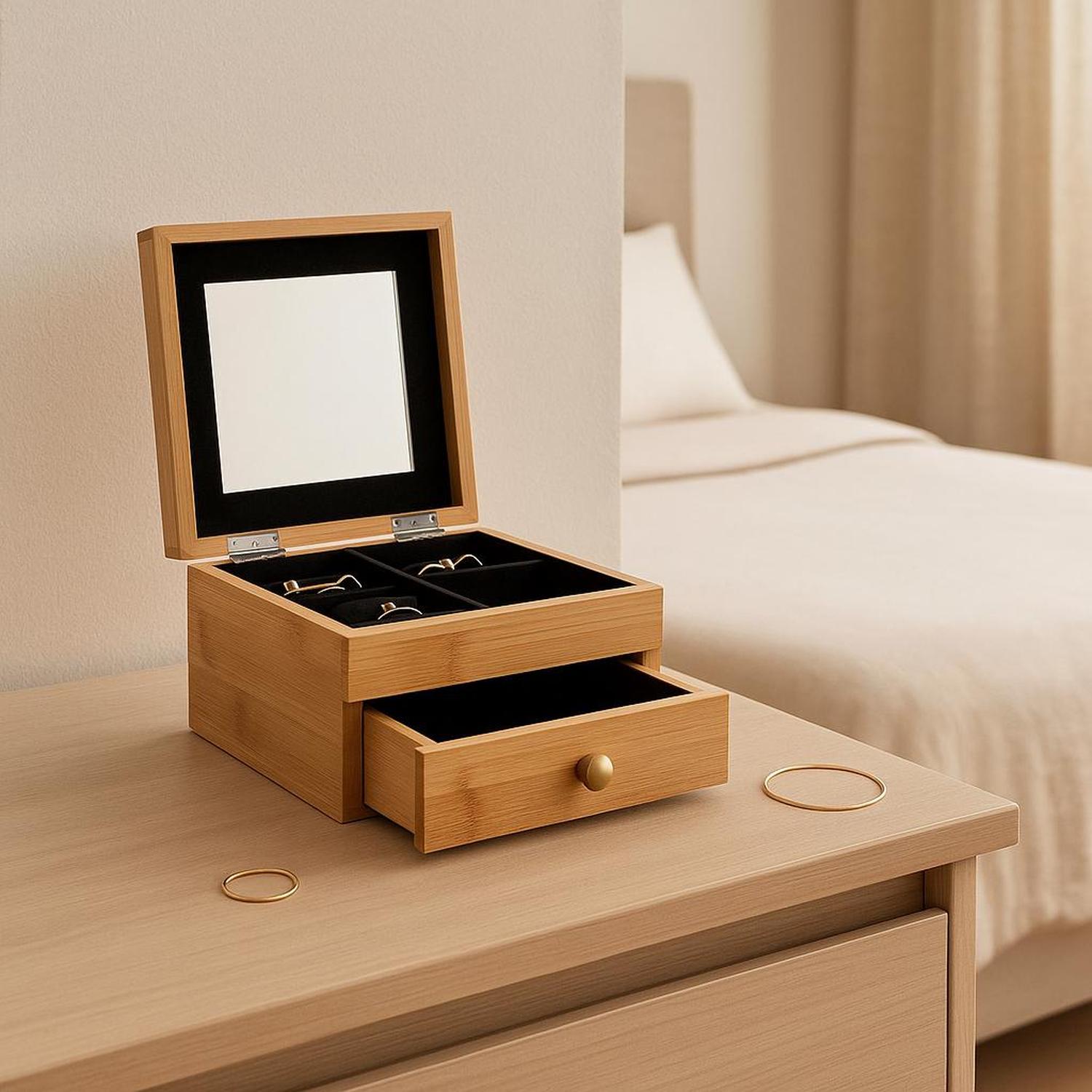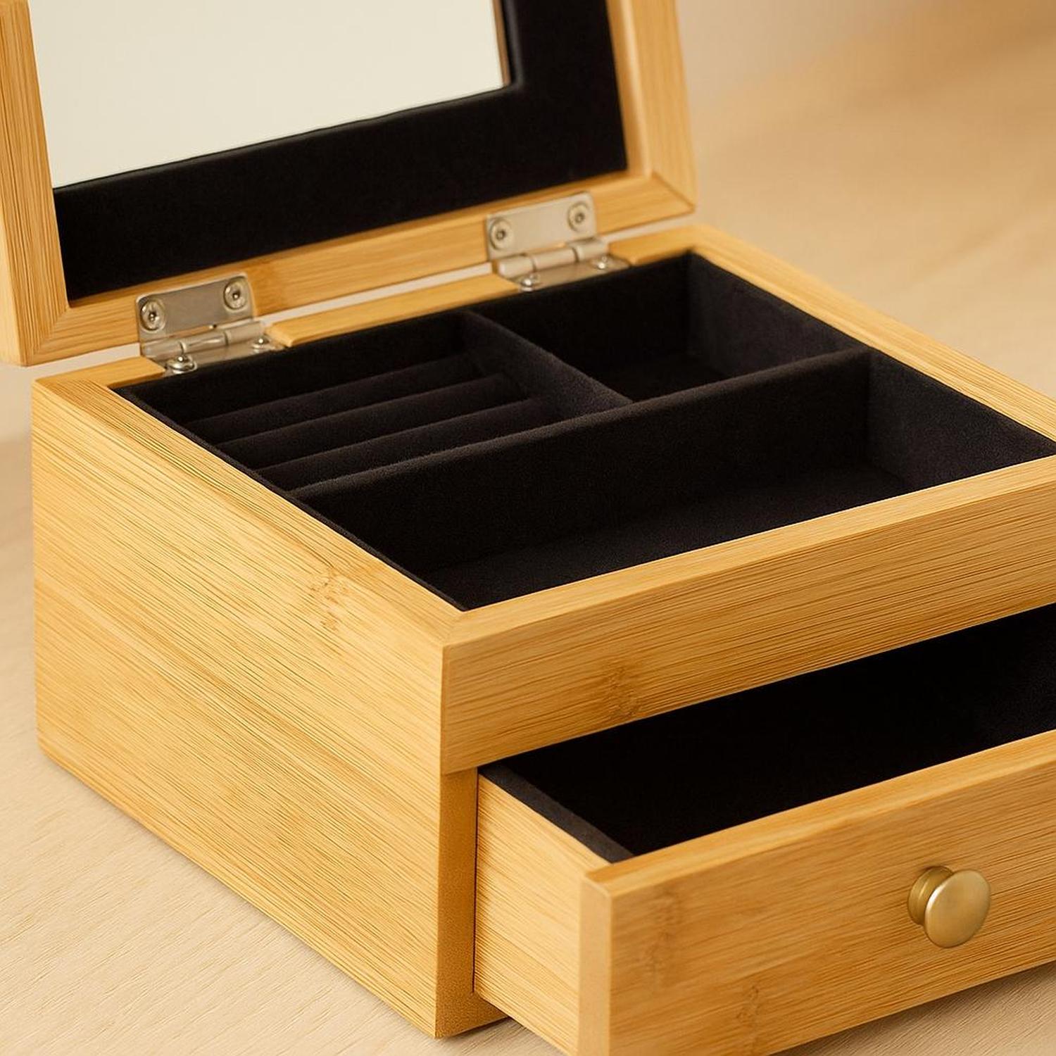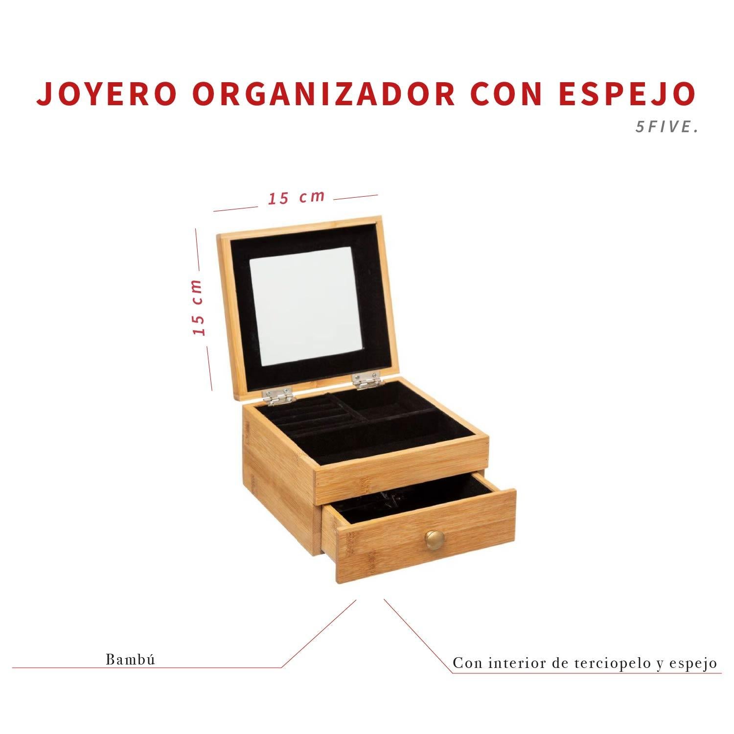Joyero Organizador con Espejo y Cajón de Bambu 5Five