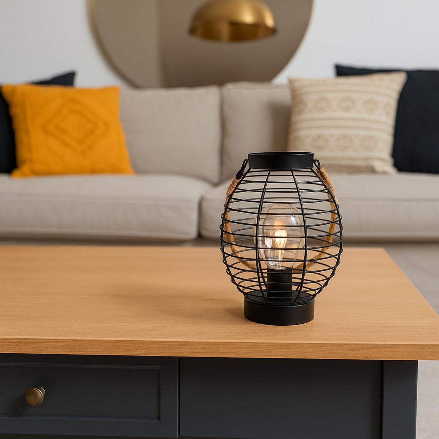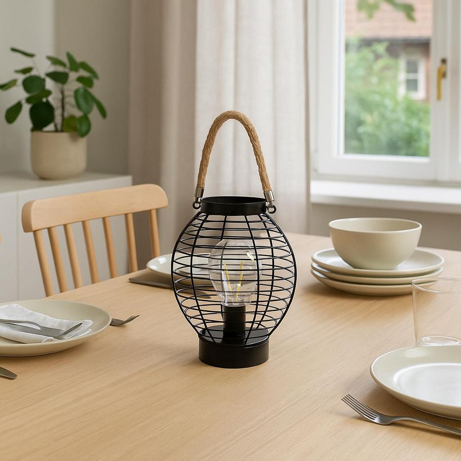 Dale un giro a la iluminación de tus espacios con la Lámpara Decorativa Day. Su diseño de jaula metálica en color negro y su ampolleta de luz cálida crean una atmósfera acogedora y moderna al instante. Al ser a pilas, te olvidas de los cables y la puedes llevar contigo a la terraza, usarla como centro de mesa en una cena especial o simplemente darle un toque de luz a ese rincón olvidado de tu living. Es la pieza perfecta para quienes buscan funcionalidad y estilo en un solo objeto.