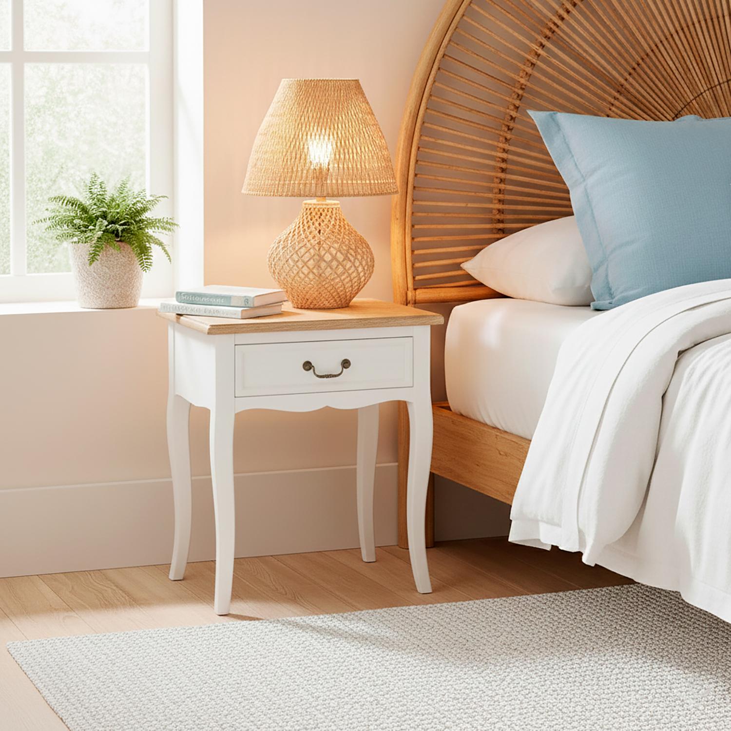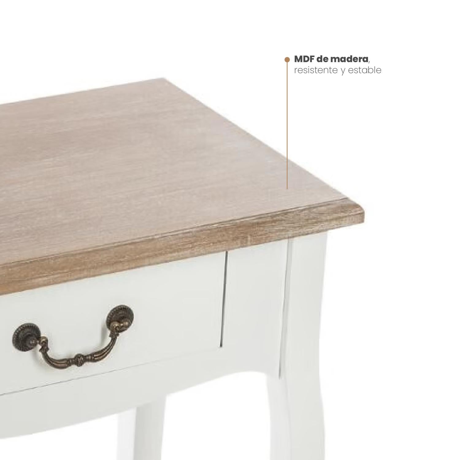 Es el mueble ideal para quienes valoran los detalles: compacto pero con la altura perfecta para acompañar tu cama. Su cajón te ofrece el espacio justo para guardar tus imprescindibles nocturnos, manteniendo la superficie despejada para una lámpara o tu libro del momento. Además, su montaje es tan sencillo que podrás disfrutar de tu nuevo rincón favorito en cuestión de minutos. ¡Dale a tu habitación ese aire sofisticado y acogedor que necesita!