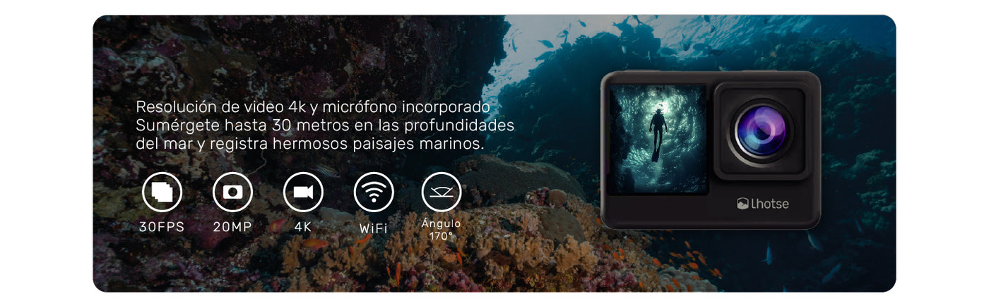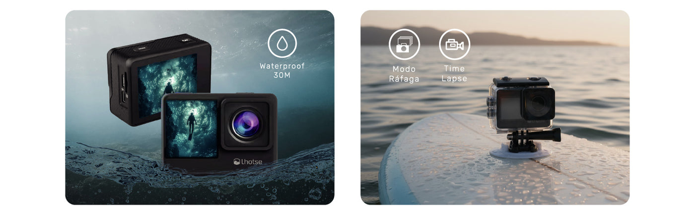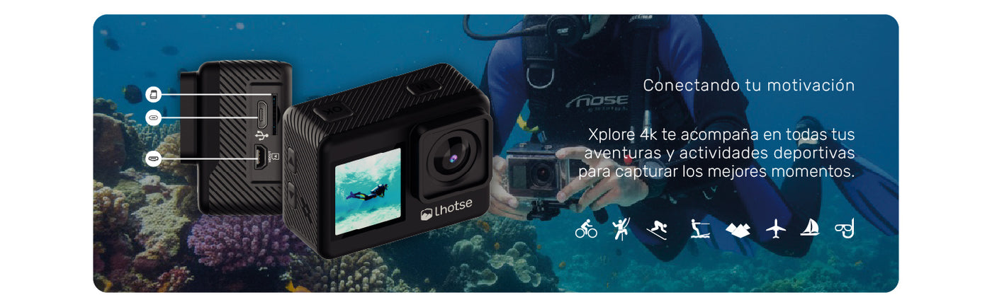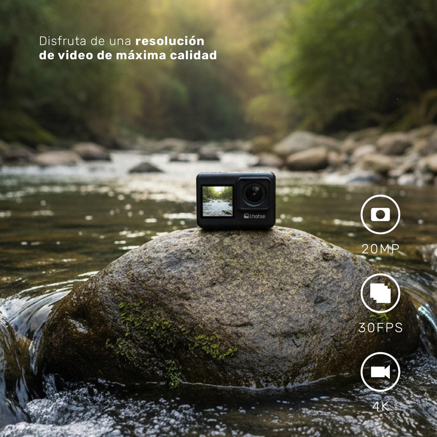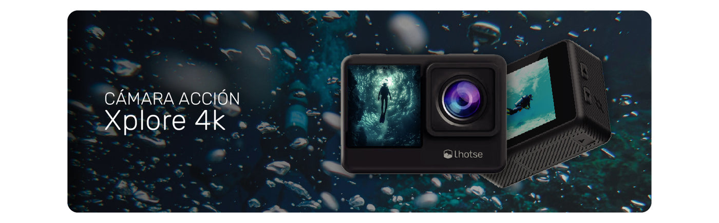 Cámara de Acción Doble Pantalla 4K 30fps Xplore de Lhotse – Tu compañera ideal para capturar cada instante de tus aventuras. Diseñada para exploradores apasionados, combina tecnología avanzada, durabilidad y funcionalidad, adaptándose a cualquier desafío.