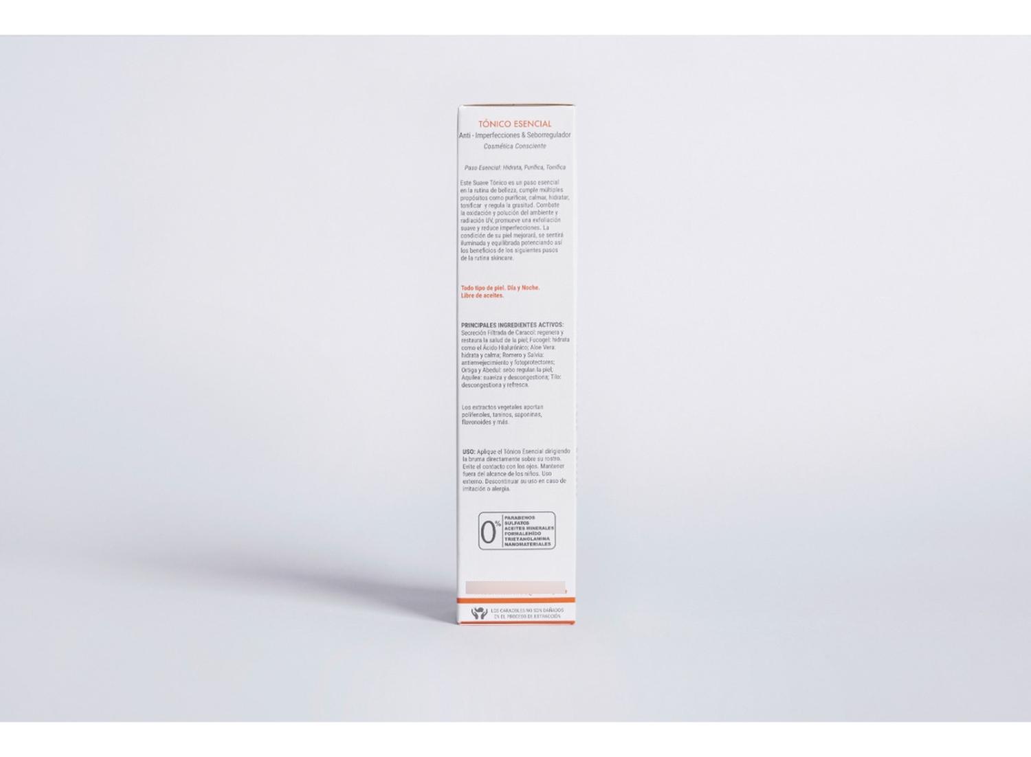 Suave y agradable tónico en formato spray que limpia, tonifica, calma e hidrata delicadamente, además promueve la exfoliación y la regeneración, todo gracias a la exclusiva combinación del extracto filtrado de baba de caracol, Aloe Vera, Papaína, extractos marinos, Caléndula, Manzanilla, Hamamelis, aminoácidos y sales. Este es un tónico único, le ayudará a rejuvenecer e iluminar su rostro de manera saludable, preparando la piel para una mejor absorción de los siguientes pasos. Libre de aceites.