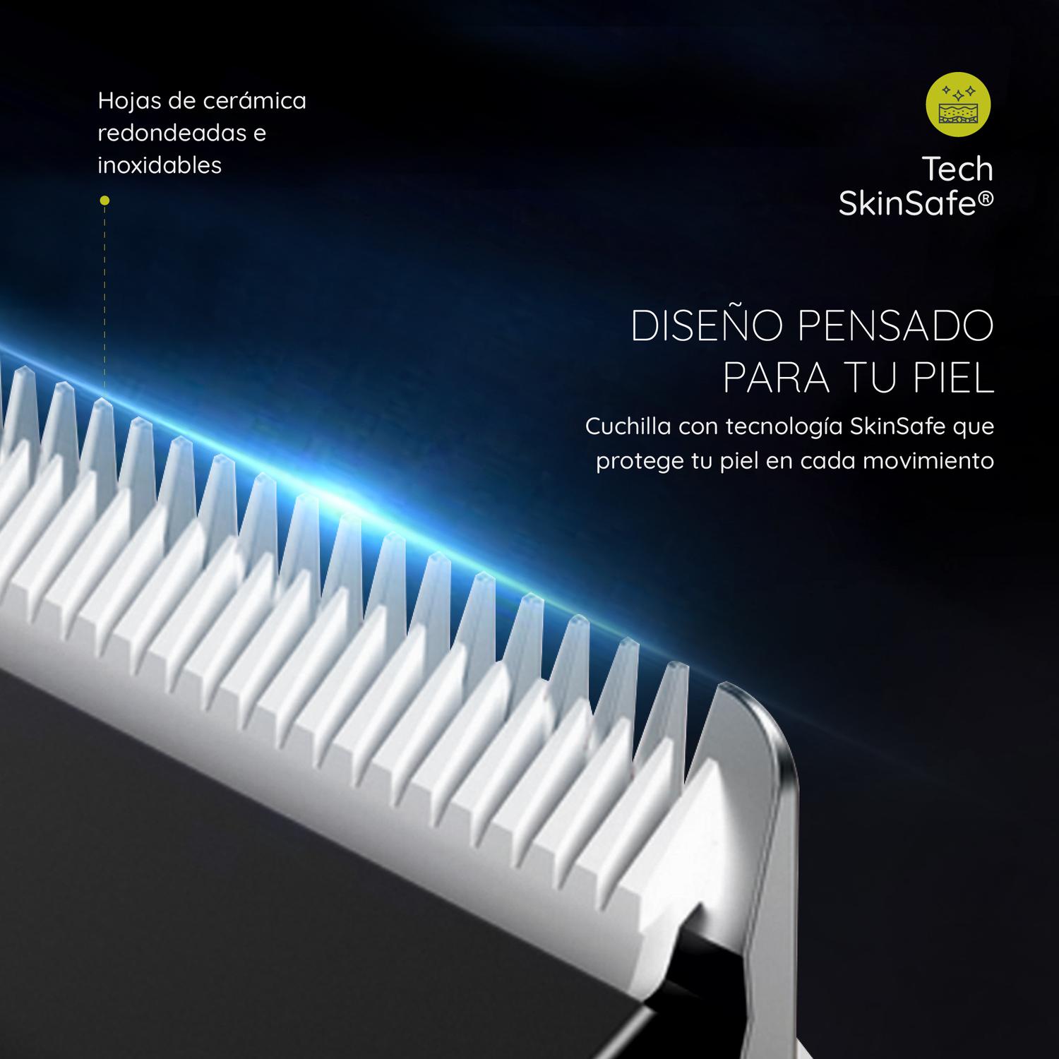 •   Tecnología Skinsafe™ & Luz LED: Máxima seguridad anti-cortes y precisión total gracias a su luz integrada que ilumina cada zona.