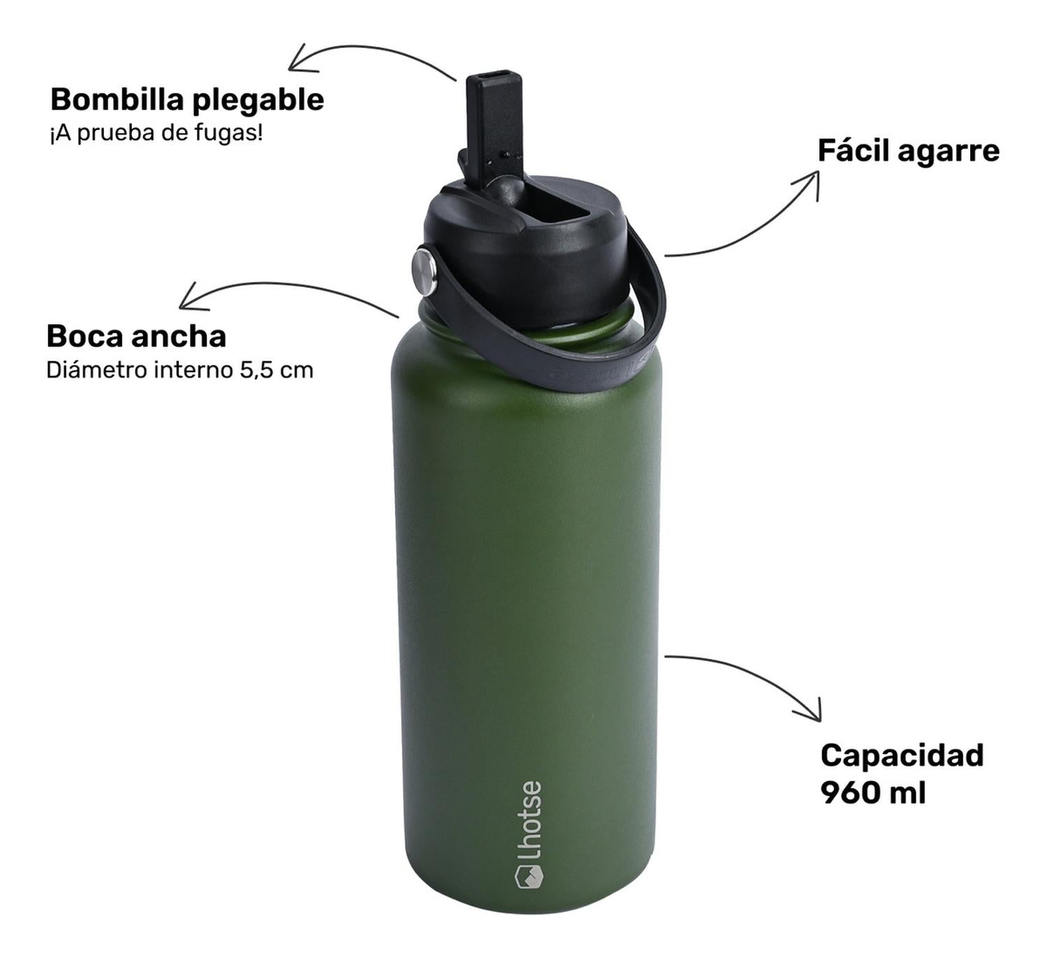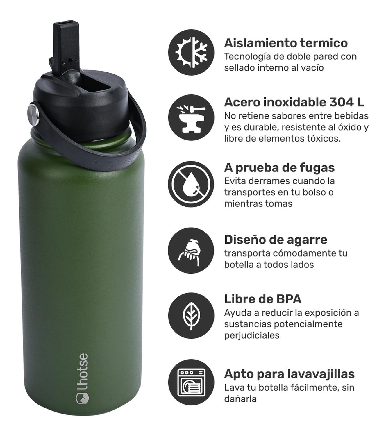 Botella Térmica Hydro Verde 960ml + 2 Tapas Lhotse