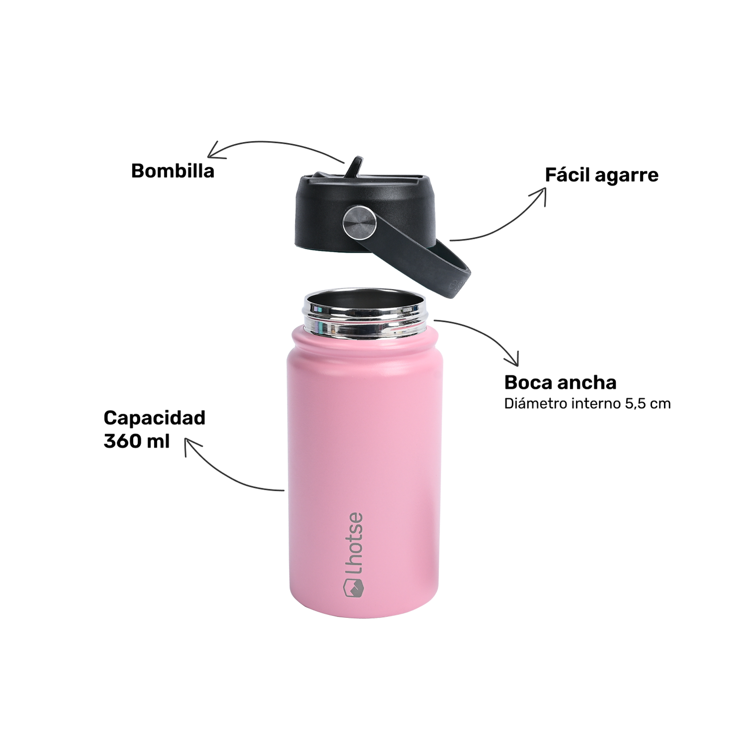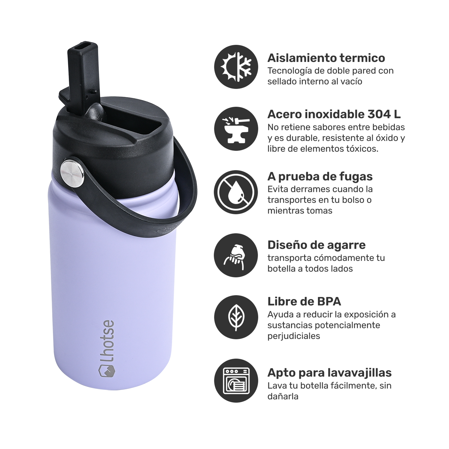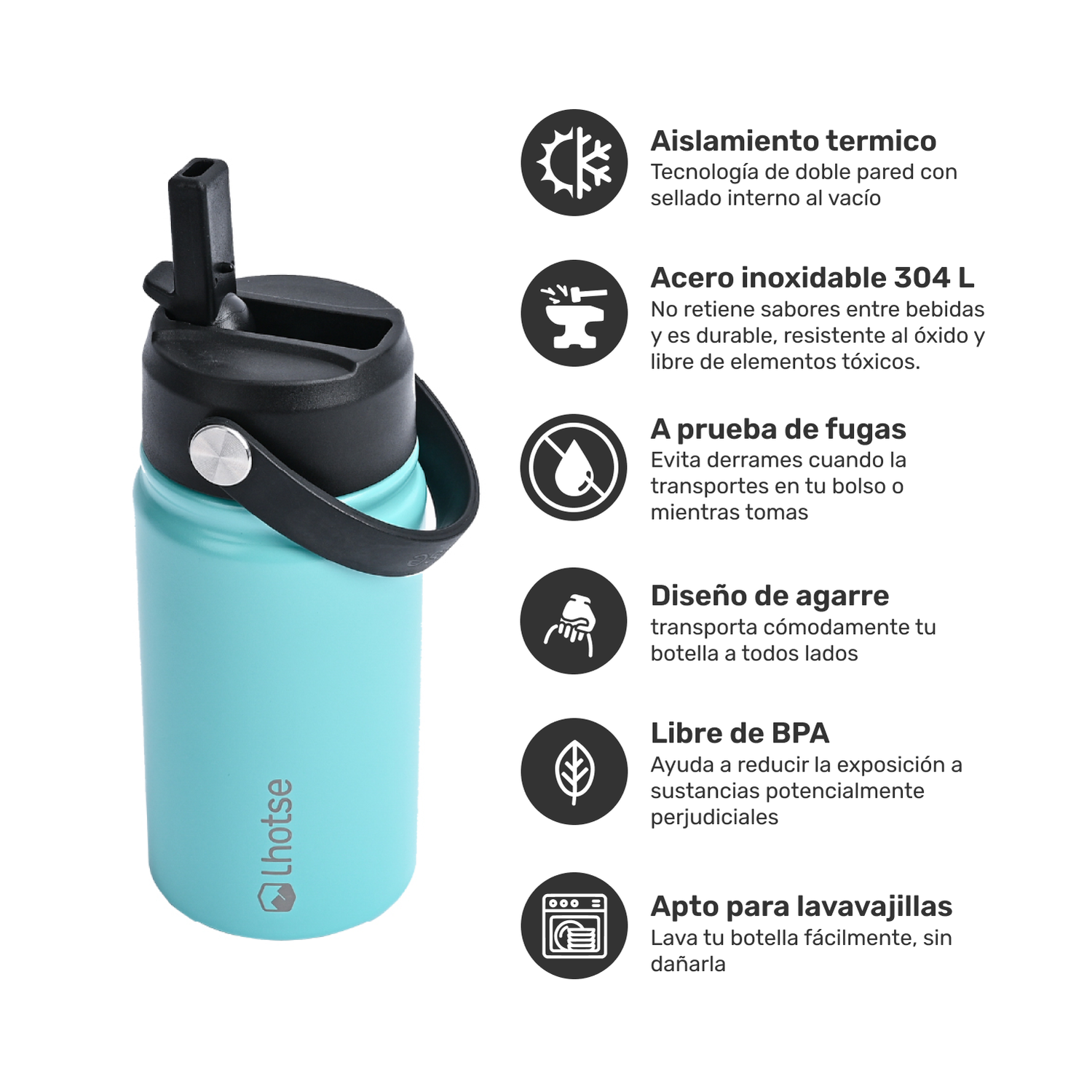 La Botella Térmica Insulada Lhotse Hydro de 360ml es tu compañera ideal para mantener tus bebidas frías por más de 20 horas y calientes por más de 12 horas. Diseñada pensando en la salud y el medio ambiente, es 100% libre de BPA. Su innovador aislamiento al vacío de doble pared garantiza la temperatura perfecta. Con un asa práctica para un transporte fácil, una bombilla a prueba de fugas y un tamaño compacto, es ideal para niños o quienes les gusta ir ligeros, esta botella es perfecta para el día a día. ¡Hidratación segura y estilo en cada sorbo!