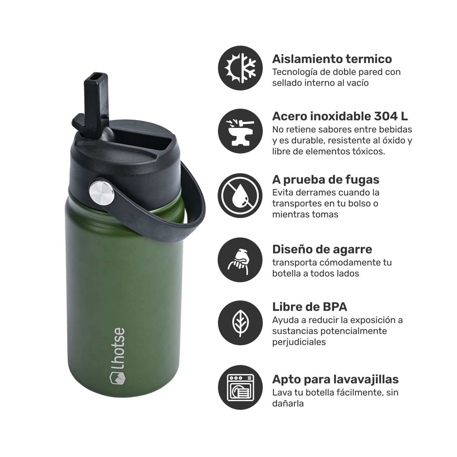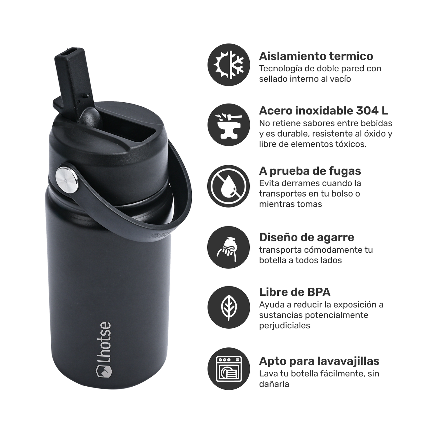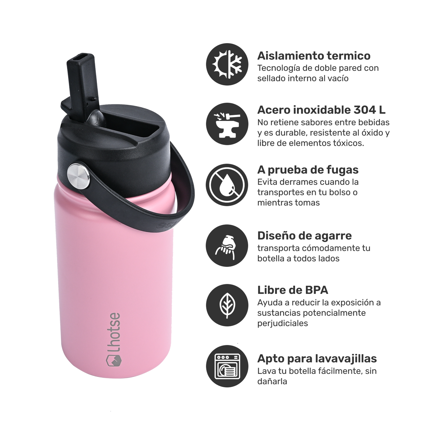 La Botella Térmica Insulada Lhotse Hydro de 360ml es tu compañera ideal para mantener tus bebidas frías por más de 20 horas y calientes por más de 12 horas. Diseñada pensando en la salud y el medio ambiente, es 100% libre de BPA. Su innovador aislamiento al vacío de doble pared garantiza la temperatura perfecta. Con un asa práctica para un transporte fácil, una bombilla a prueba de fugas y un tamaño compacto, es ideal para niños o quienes les gusta ir ligeros, esta botella es perfecta para el día a día. ¡Hidratación segura y estilo en cada sorbo!