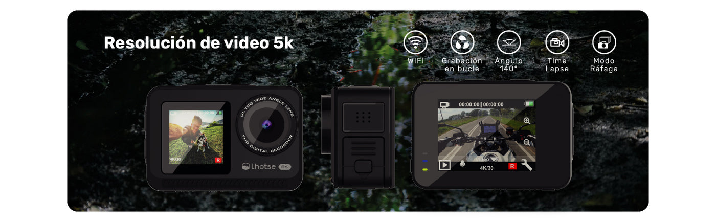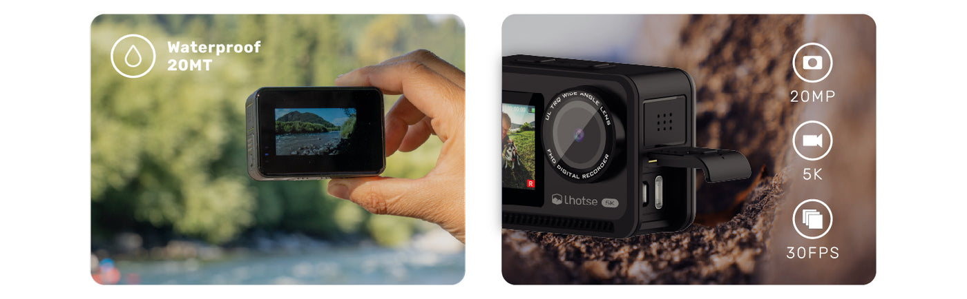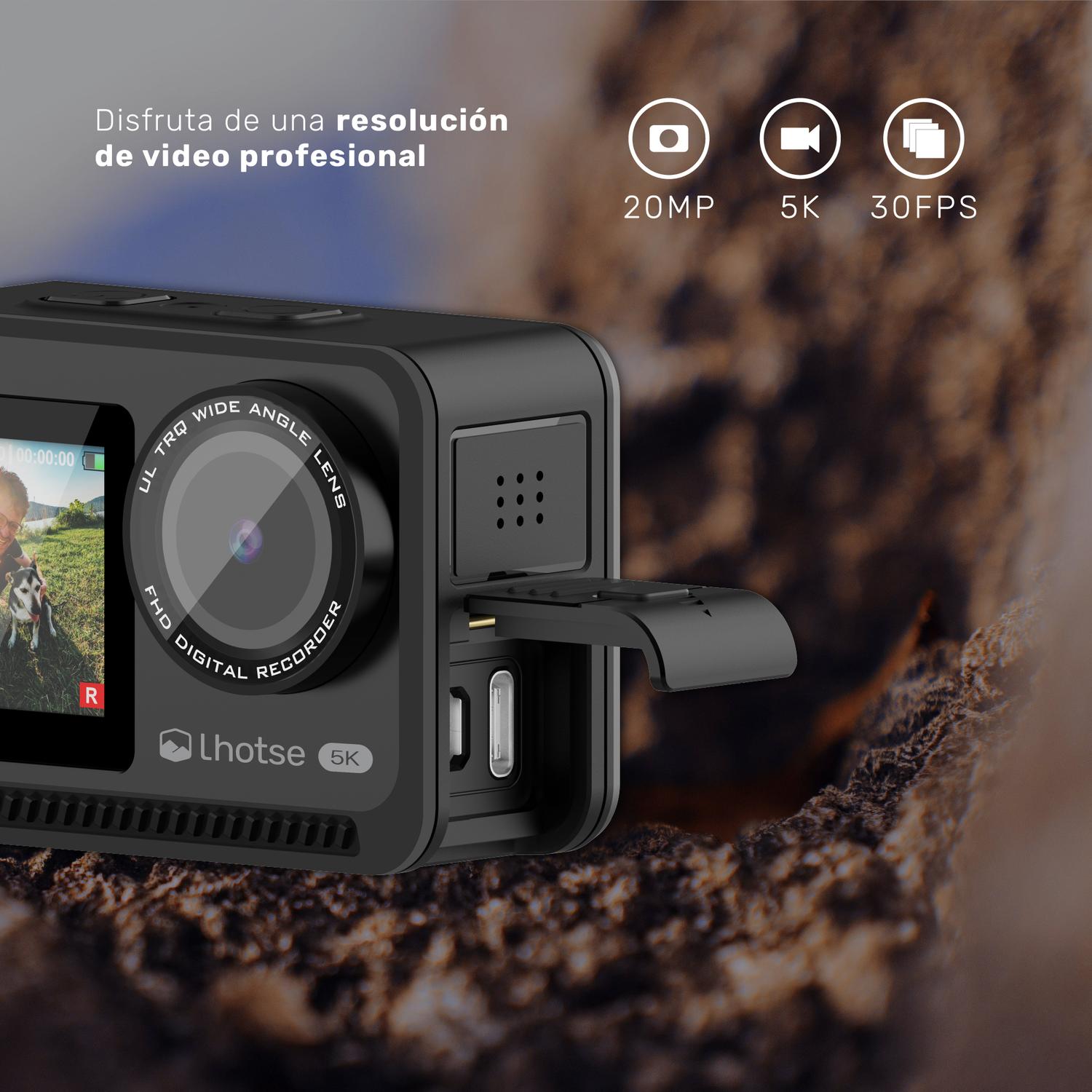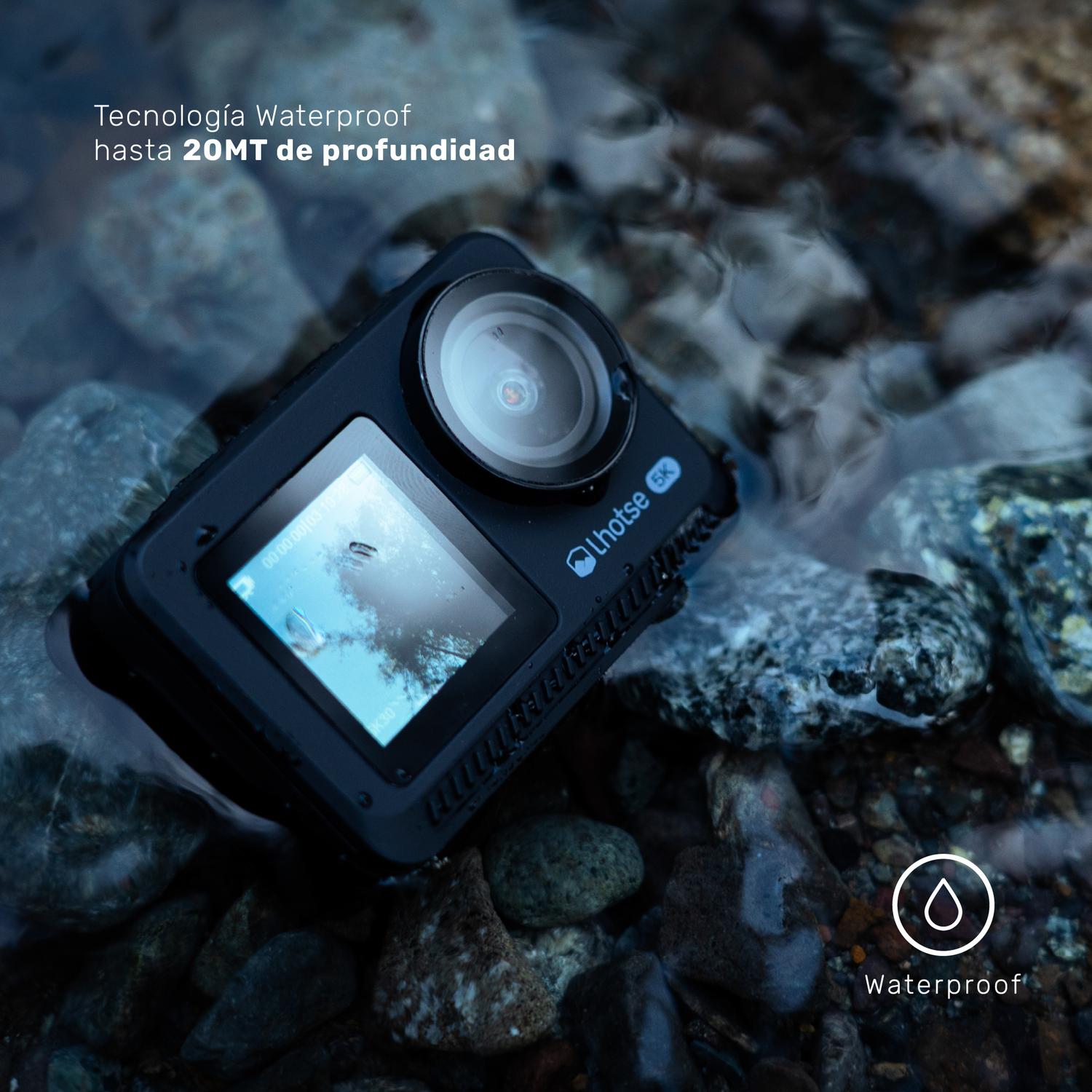 Graba videos en 5K (5120*2889) a 30FPS o en 4K (3840*2160) a 60FPS, con el formato H.264 MOV, y captura fotografías espectaculares en 14M JPEG. Su cuerpo waterproof hasta 20 metros y la capa de vidrio 6G la hacen ideal para aventuras acuáticas y terrenos extremos.