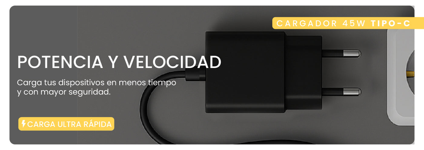 No te conformes con menos. Dale a tus equipos la energía que merecen con la potencia y velocidad del Cargador Ultra Rápido de Pared 45W USB-C LEVO.
