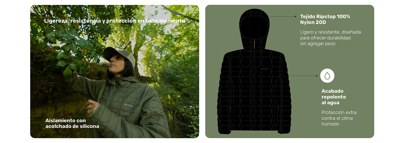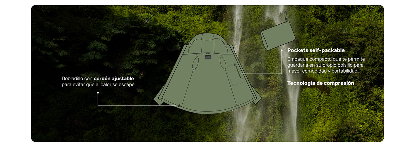 parka ligera térmica es impermeable, cortaviento y altamente compresible, ideal