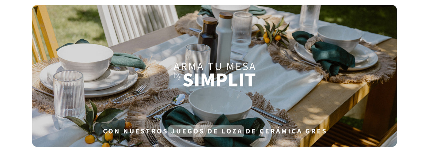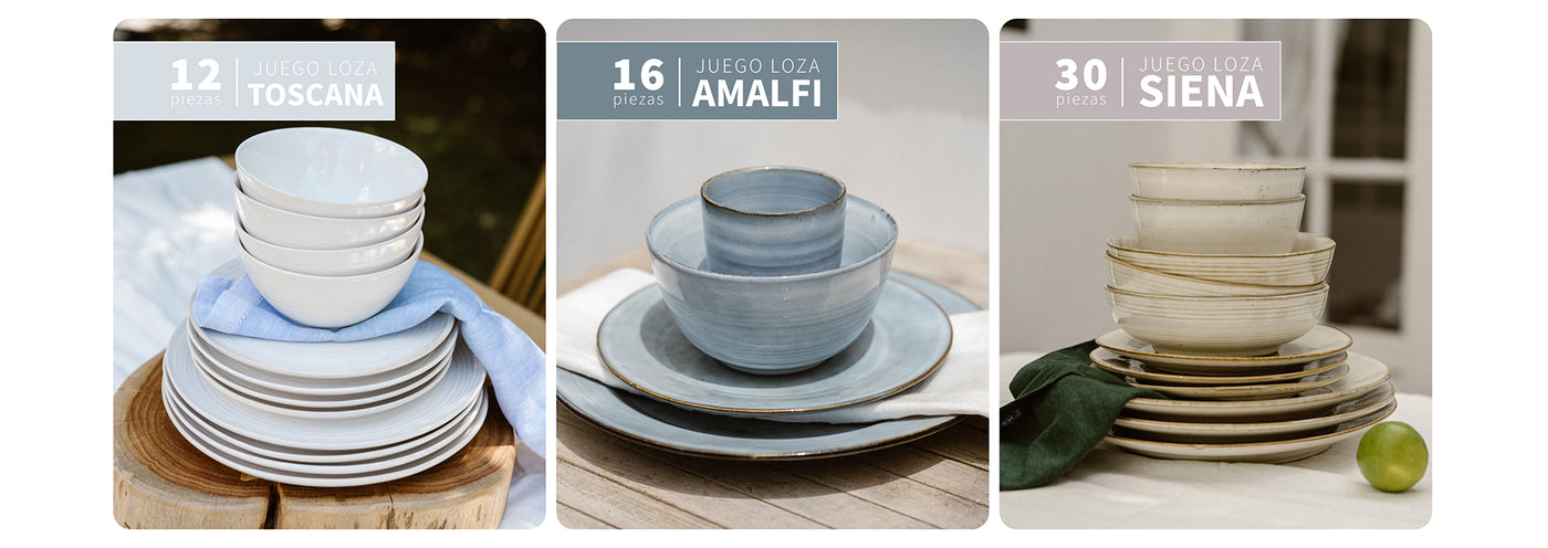 sofisticación con el juego de loza Toscana de Simplit. Su diseño en un delicado