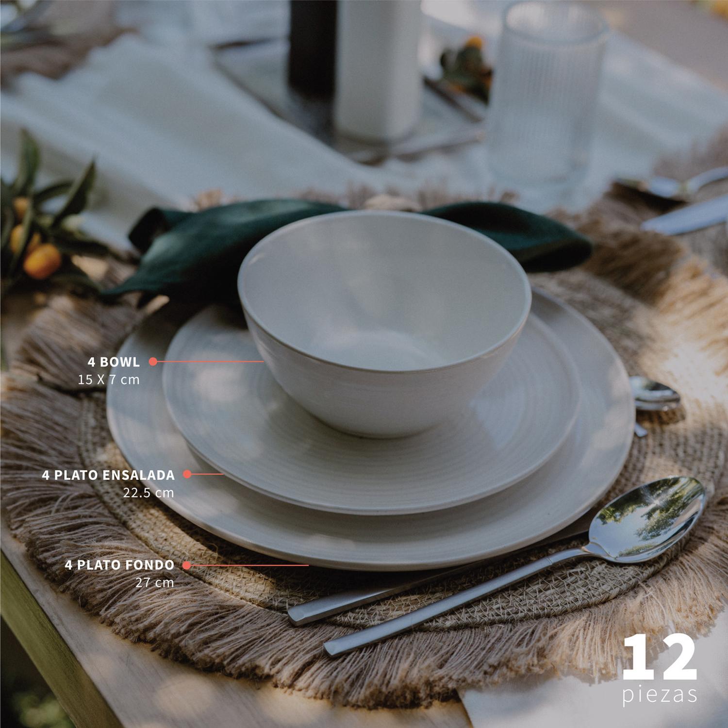 Juego de Loza 12 Piezas Cerámica Toscana de Simplit: Elegancia Natural para