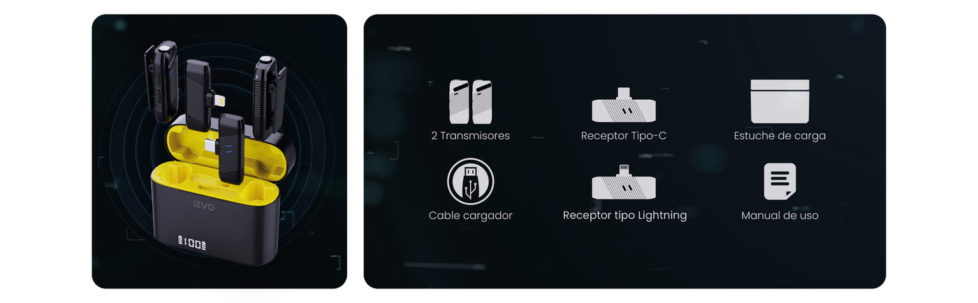 Siente la libertad de moverte con confianza mientras mantienes una calidad de sonido cristalina. Ya sea que estés grabando un vlog, dando una conferencia o creando contenido en vivo, el EchoPro te asegura que cada nota y cada emoción lleguen a tu audiencia como si estuvieran justo a tu lado.