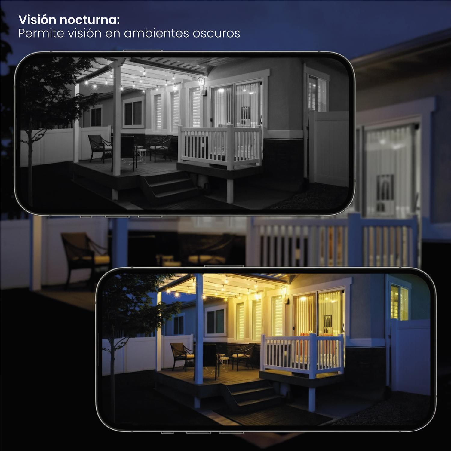 - Visión nocturna: Monitorea en cualquier momento del día o la noche gracias a su capacidad de visión en ambientes oscuros.