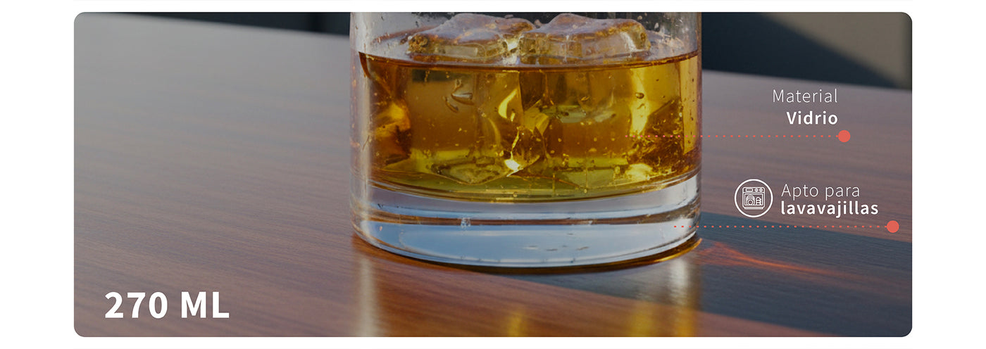 Este set de 6 vasos de 270ml está diseñado para brindarte una experiencia de degustación inigualable. Fabricados con vidrio resistente y duradero, destacan por su diseño clásico y sofisticado, siendo ideales para disfrutar whisky o cualquier bebida espirituosa en reuniones íntimas o celebraciones especiales.
