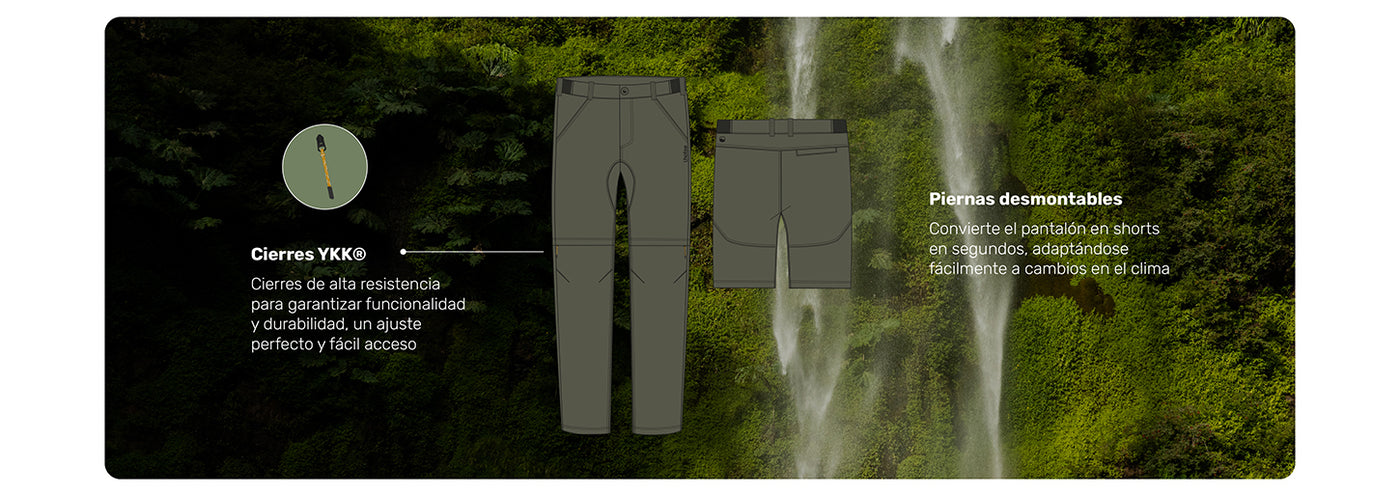 •    Piernas desmontables: Convierte el pantalón en shorts en segundos, adaptándose fácilmente a cambios en el clima.
