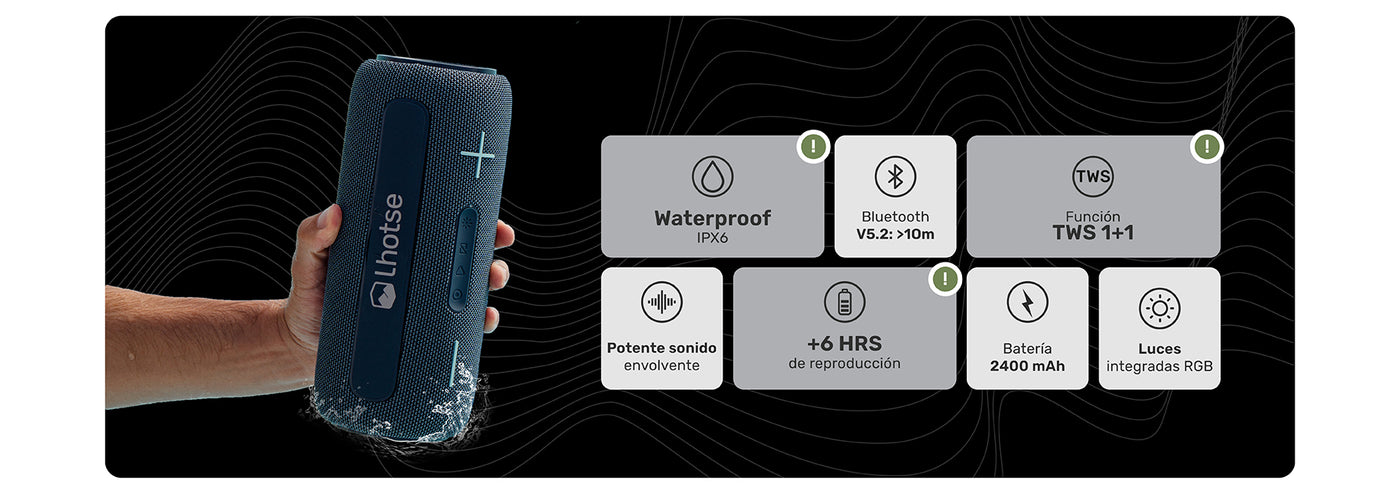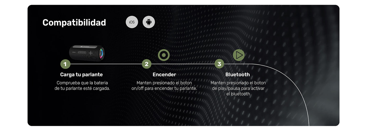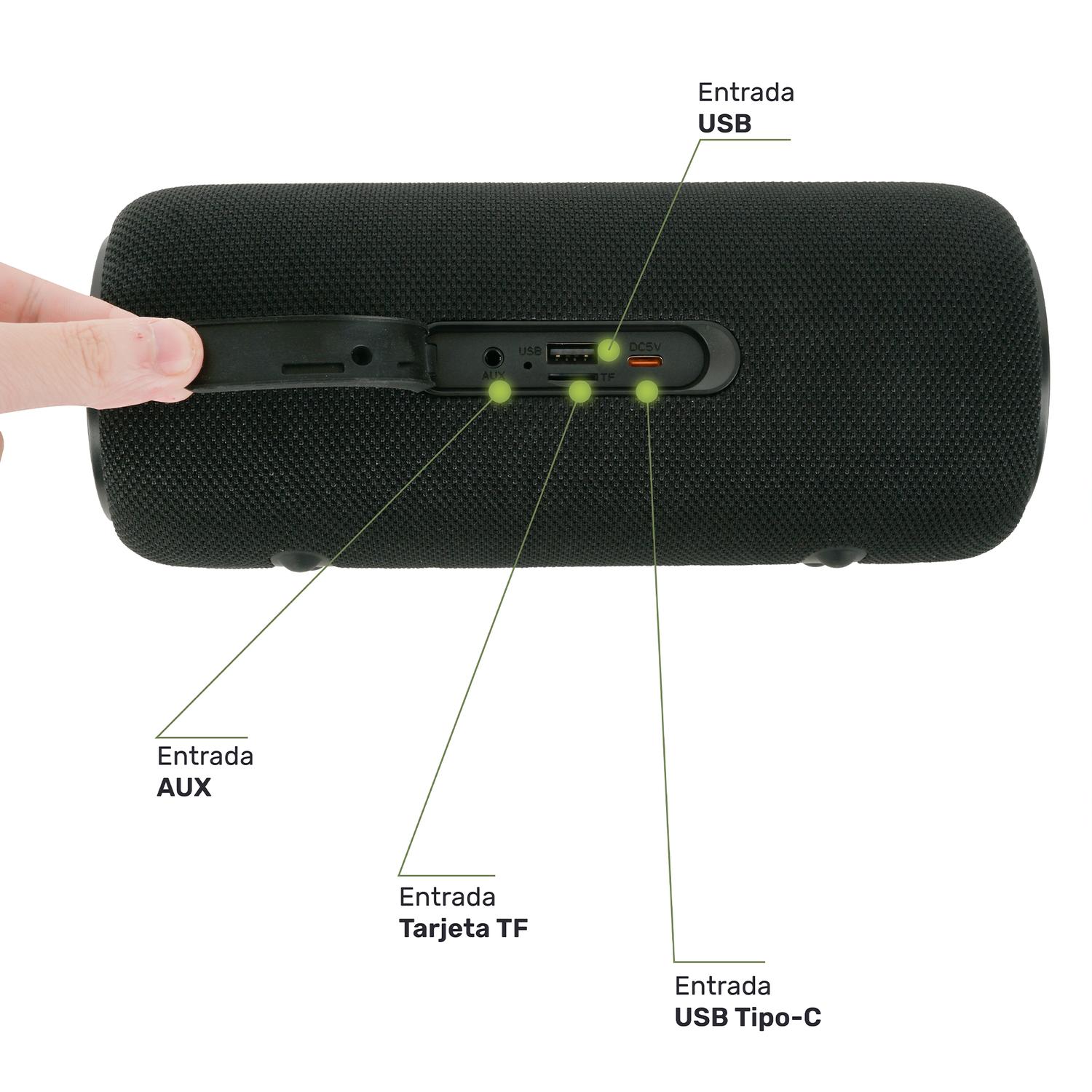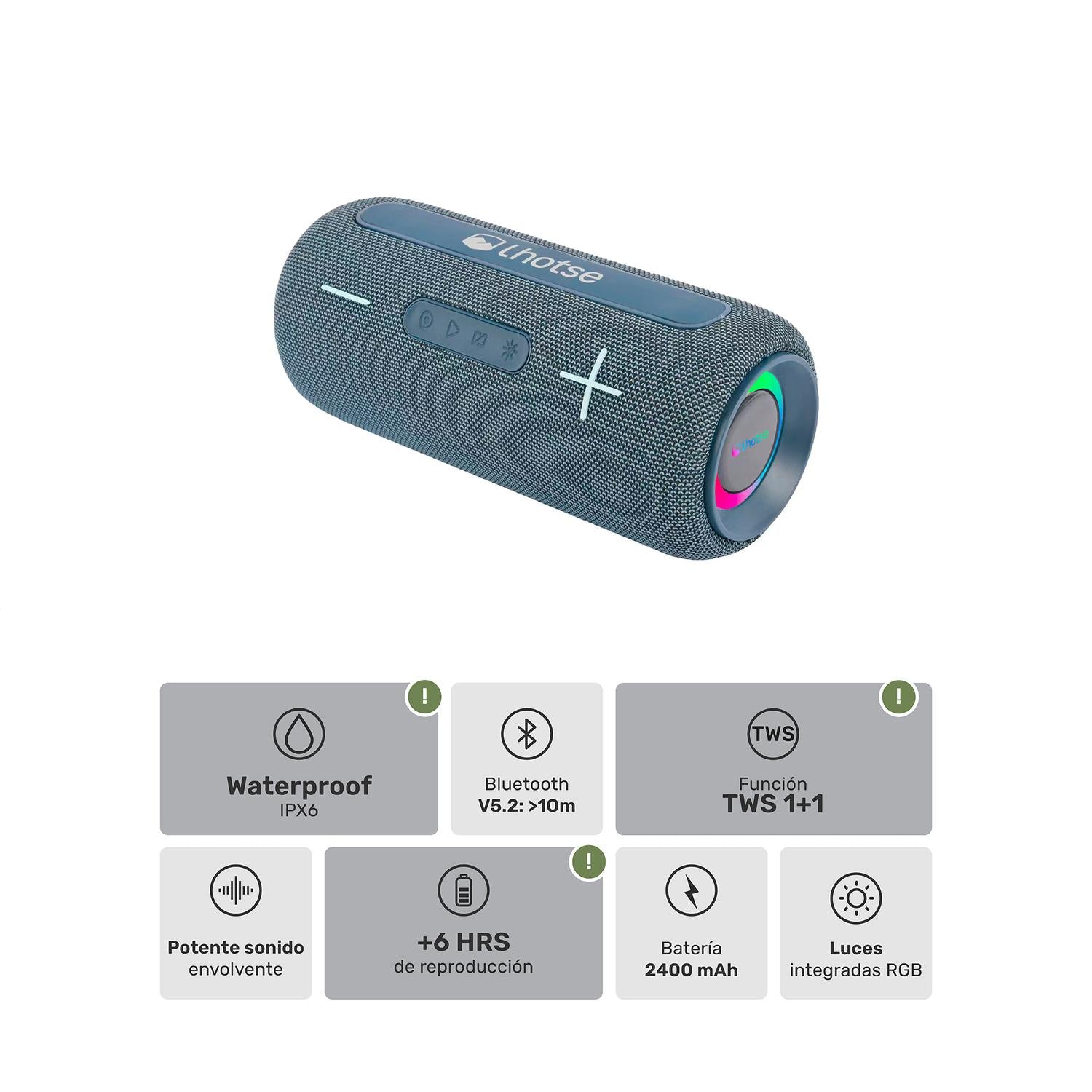 •    Emparejamiento TWS: Conecta dos parlantes para sonido estéreo.