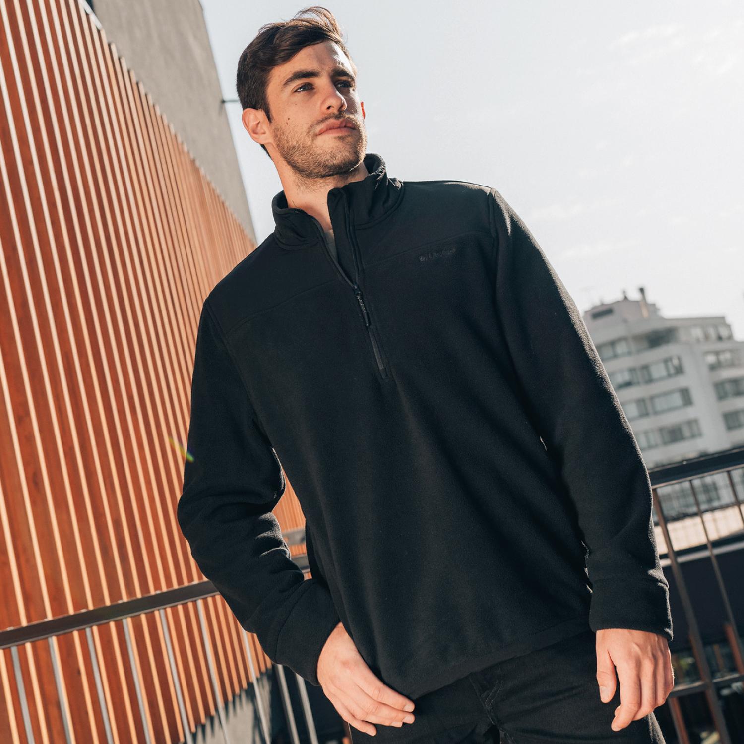 Minimalismo técnico en cada costura. Este polar medio cierre es ligero, cálido y perfecto para capas intermedias en actividades intensas o para un look casual con sello outdoor.