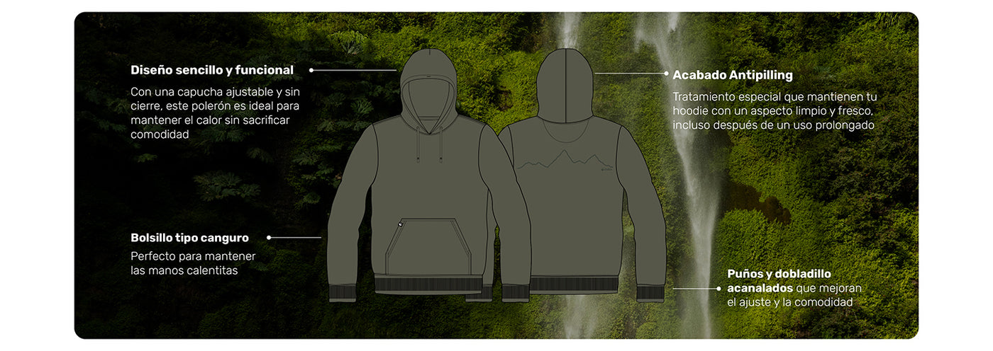• Acabado Antipilling: Tratamiento especial que mantienen tu hoodie con un aspecto limpio y fresco, incluso después de un uso prolongado.