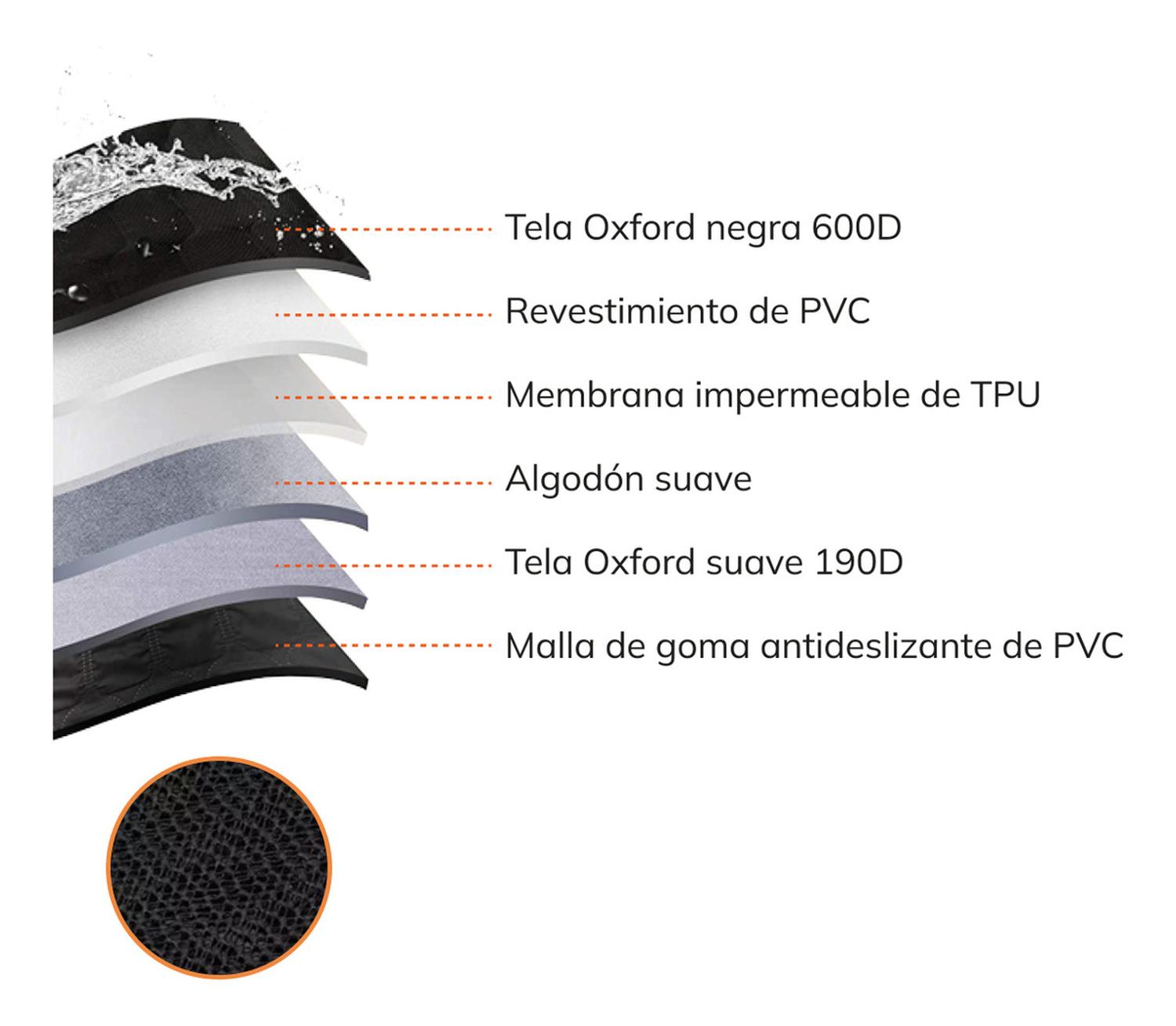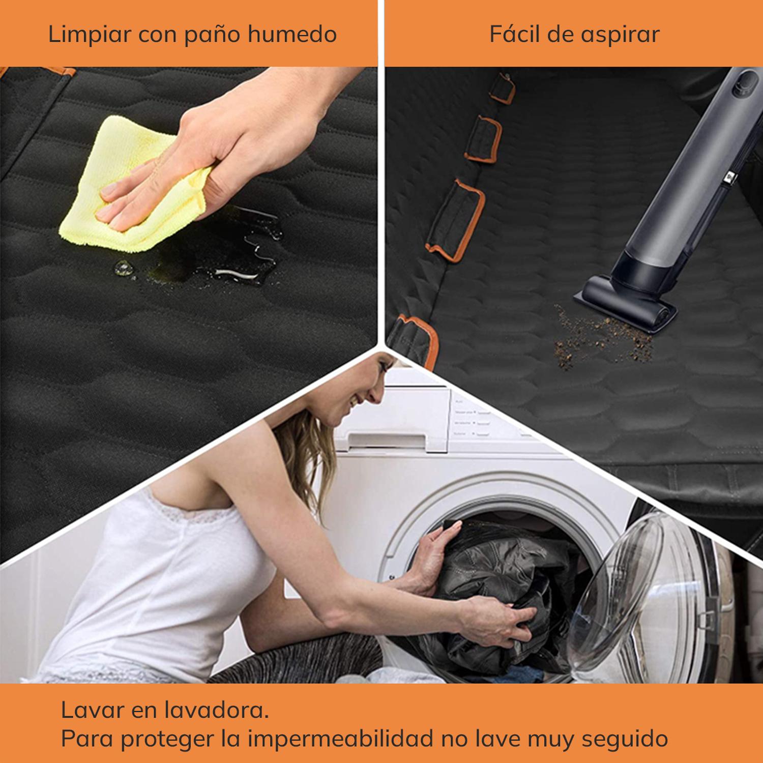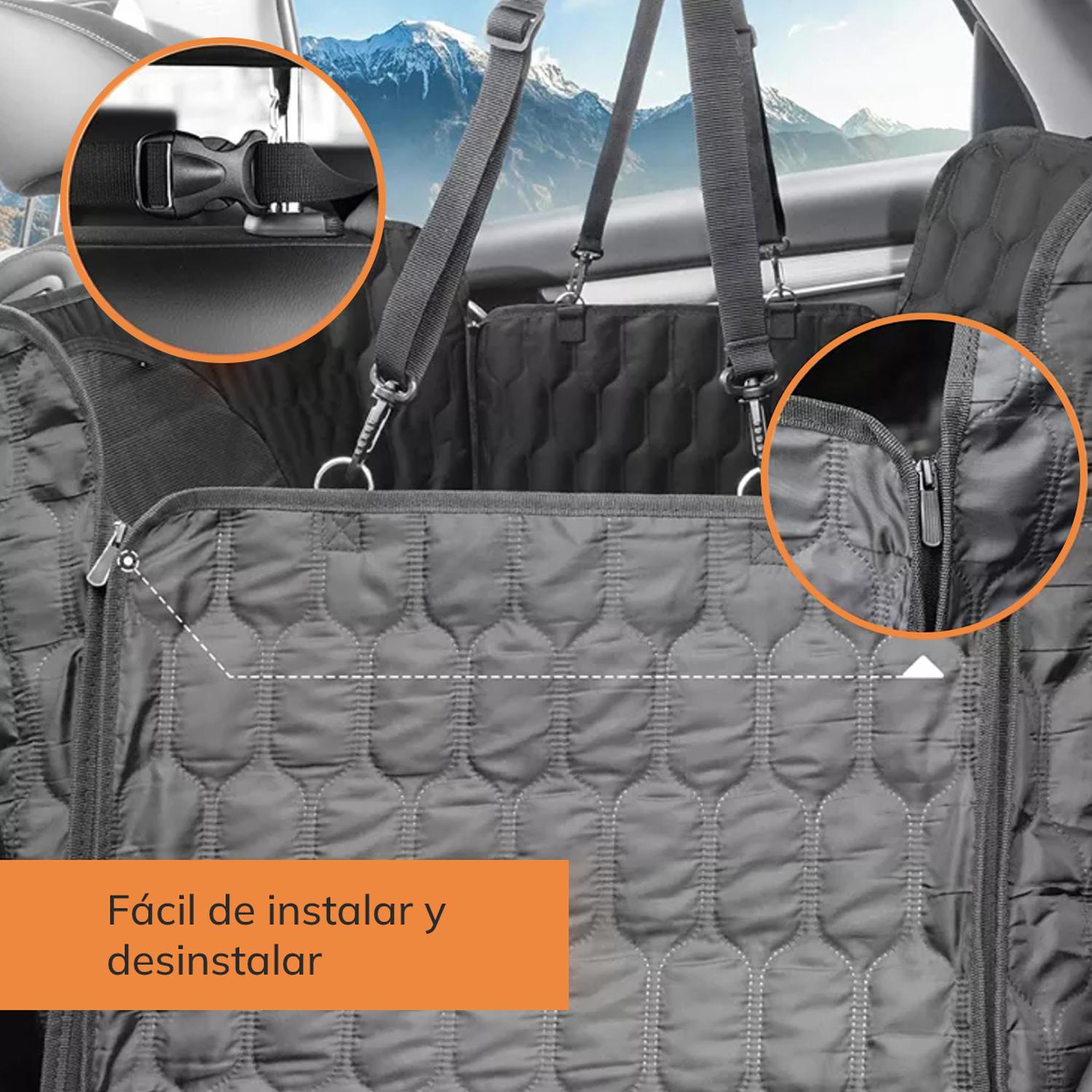 • Impermeable: La funda está hecha de un material impermeable que protege los asientos de tu automóvil de la humedad y los derrames accidentales. Esto es especialmente útil si tu mascota tiende a salpicar agua o si tienes un perro que ha estado jugando al aire libre y está mojado. La impermeabilidad de la funda evita que el agua se filtre a través del tejido y cause daños en los asientos.