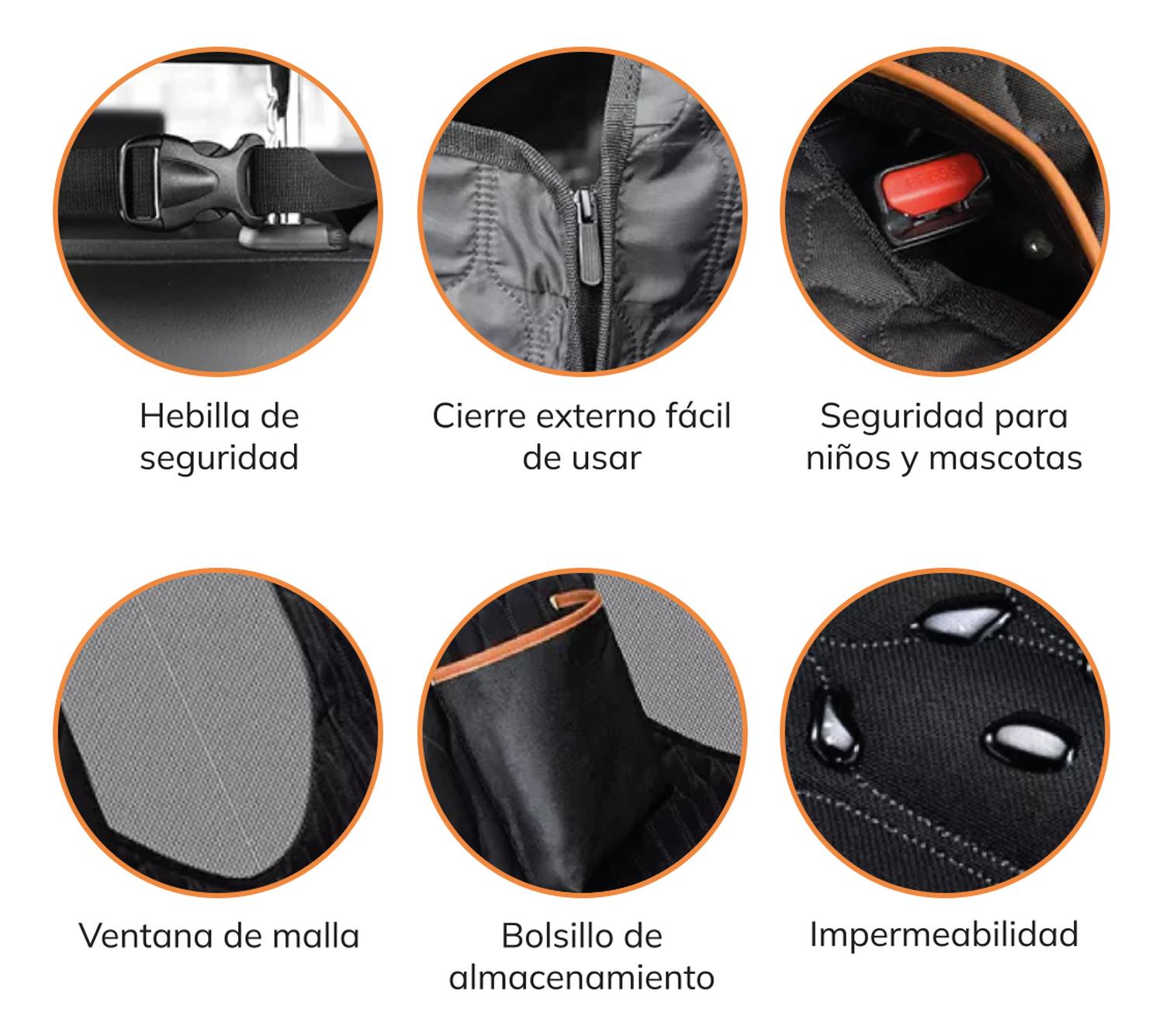 • Cierres resistentes: la funda cuenta con cierres resistentes que permitirán cubrir el asiento entero hacia abajo o cerrarlo hacia arriba generando un canil para tu mascota.