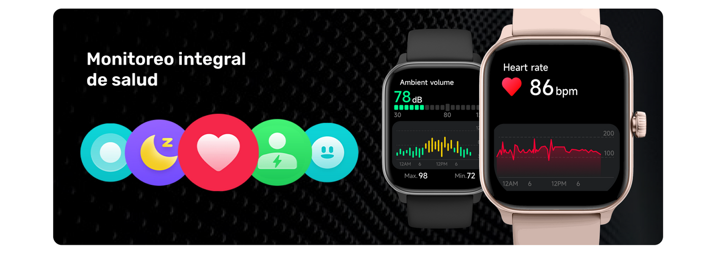 Disfruta de tu música en cualquier lugar, ya que puedes cargarla directamente en el reloj, sin necesidad de llevar tu celular. Su completo sistema de monitoreo de salud incluye pulsaciones, oxígeno en sangre, estrés, sueño y ciclo menstrual. Además, con 110 modos deportivos, monitorea tus entrenamientos, pasos, calorías y distancia.