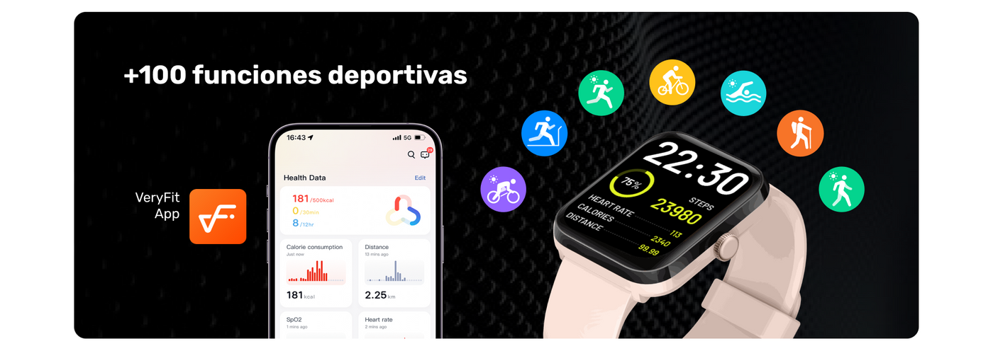 •    Más de 100 modos deportivos (ciclismo, running, natación)