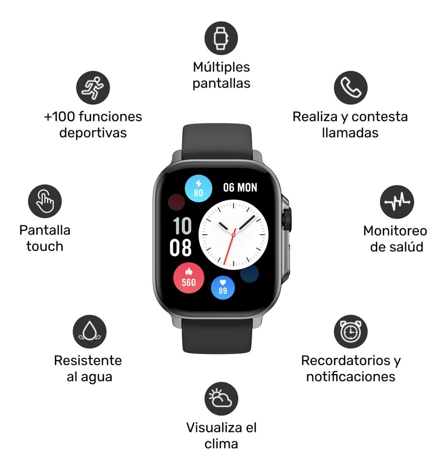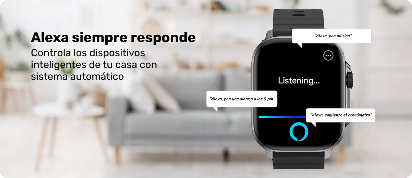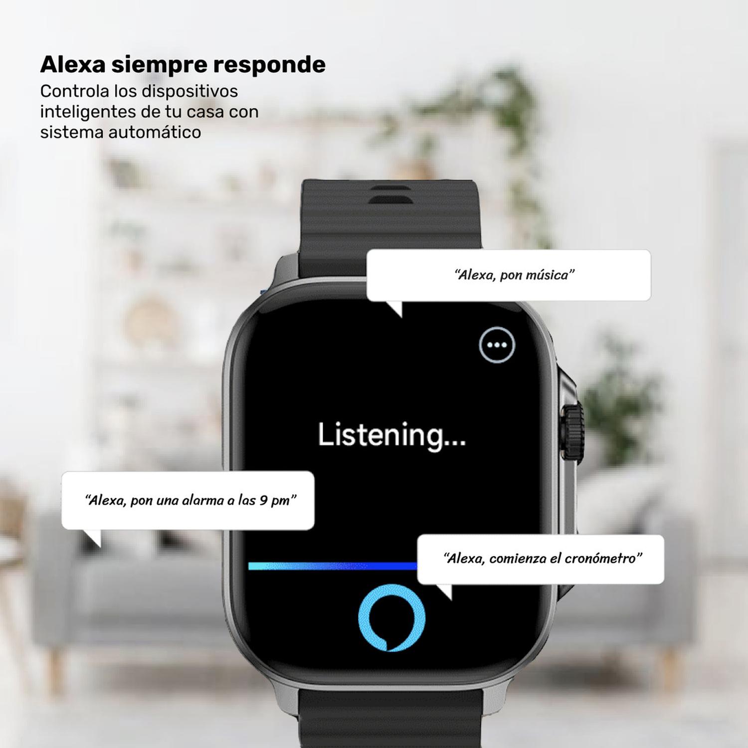 • Alexa integrado, háblale a tu smartwatch para pedirle que te de información o sincronizar alarmas.