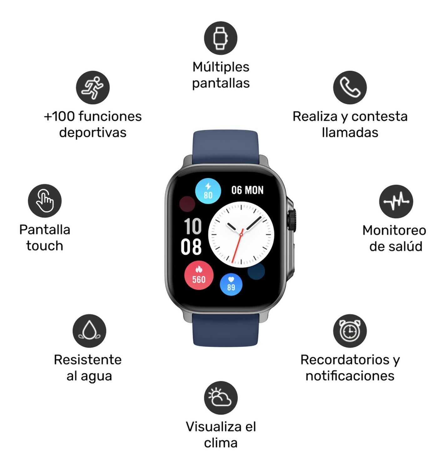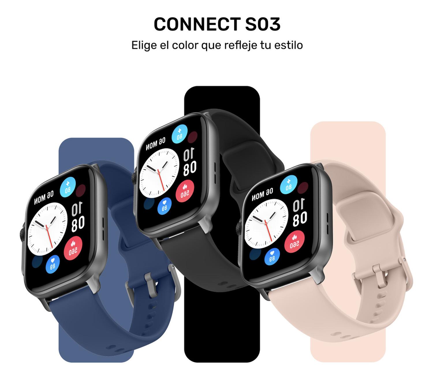 Optimiza tu entrenamiento sincronizando planes de running, monitorea la frecuencia cardíaca, oxigenación, stress y sueño. Con funciones prácticas como recordatorios inteligentes, control de música y Alexa integrado, el Connect S03 simplifica tu vida diaria. Recibe notificaciones, desde WhatsApp hasta recordatorios menstruales, y disfruta de una batería de 5-7 días con resistencia al agua IP68. El Connect S03 es más que un reloj; es tu compañero inteligente para cada momento.
