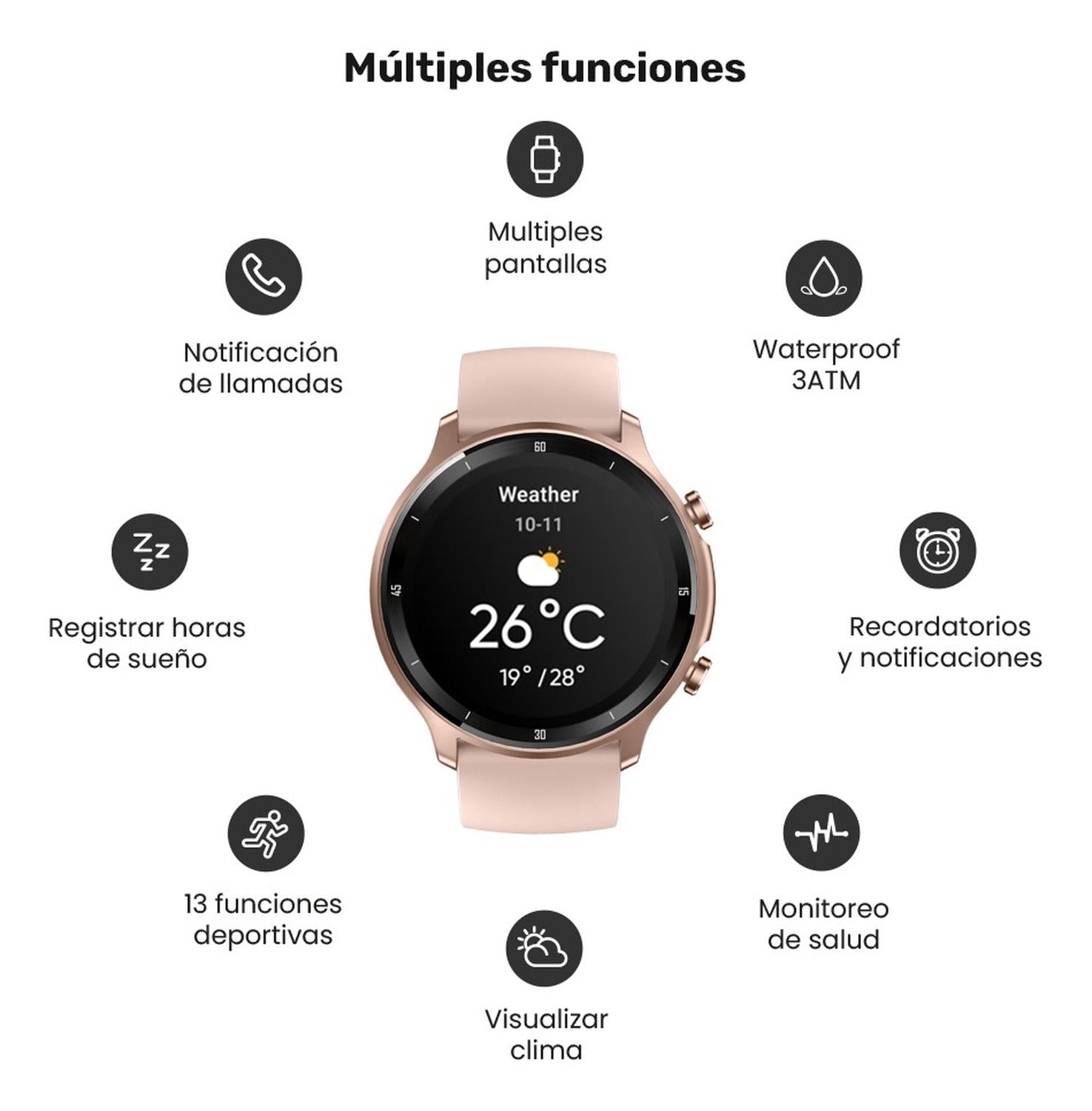 • 13 modos deportivos: trote interior y exterior, caminata interior y exterior, bicicleta interior y exterior, cricket, senderismo, natación, yoga, remadora, elíptica, fitness.