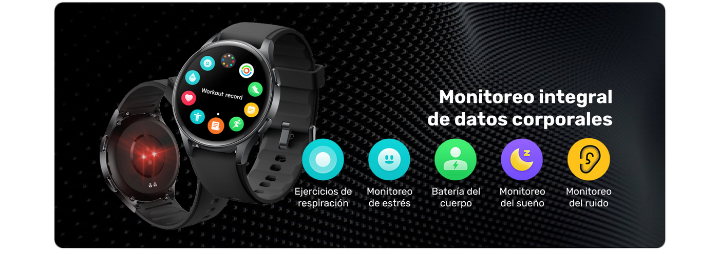 - Medición de parametros de salud: Sueño, ritmo cardiaco, estress, energía corporal, oxigeno en la sangre, etc