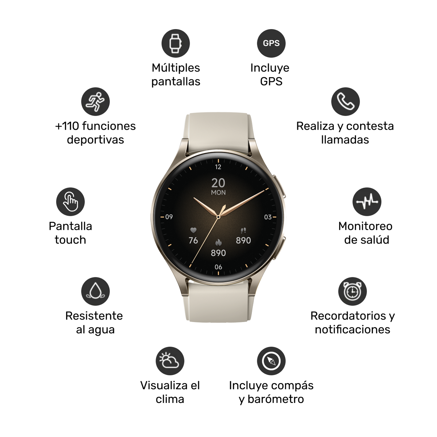 Controla cada aspecto de tu salud y bienestar con un monitoreo completo de signos vitales como la frecuencia cardíaca, los niveles de estrés, la energía corporal y la saturación de oxígeno en la sangre. Mantente conectado con la capacidad de hacer y recibir llamadas directamente desde tu muñeca.