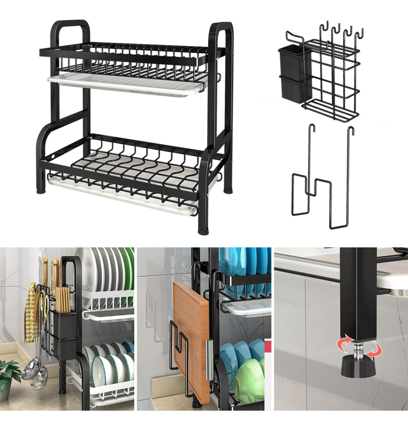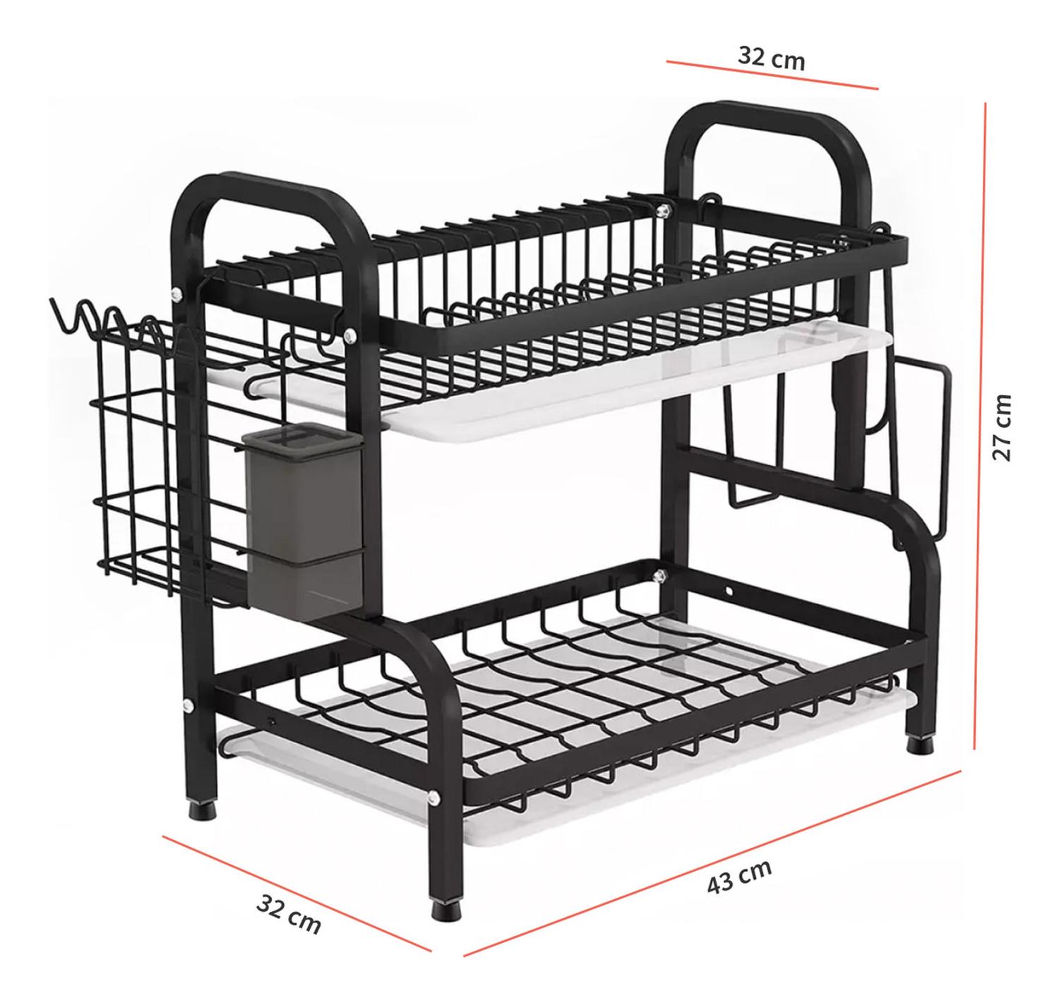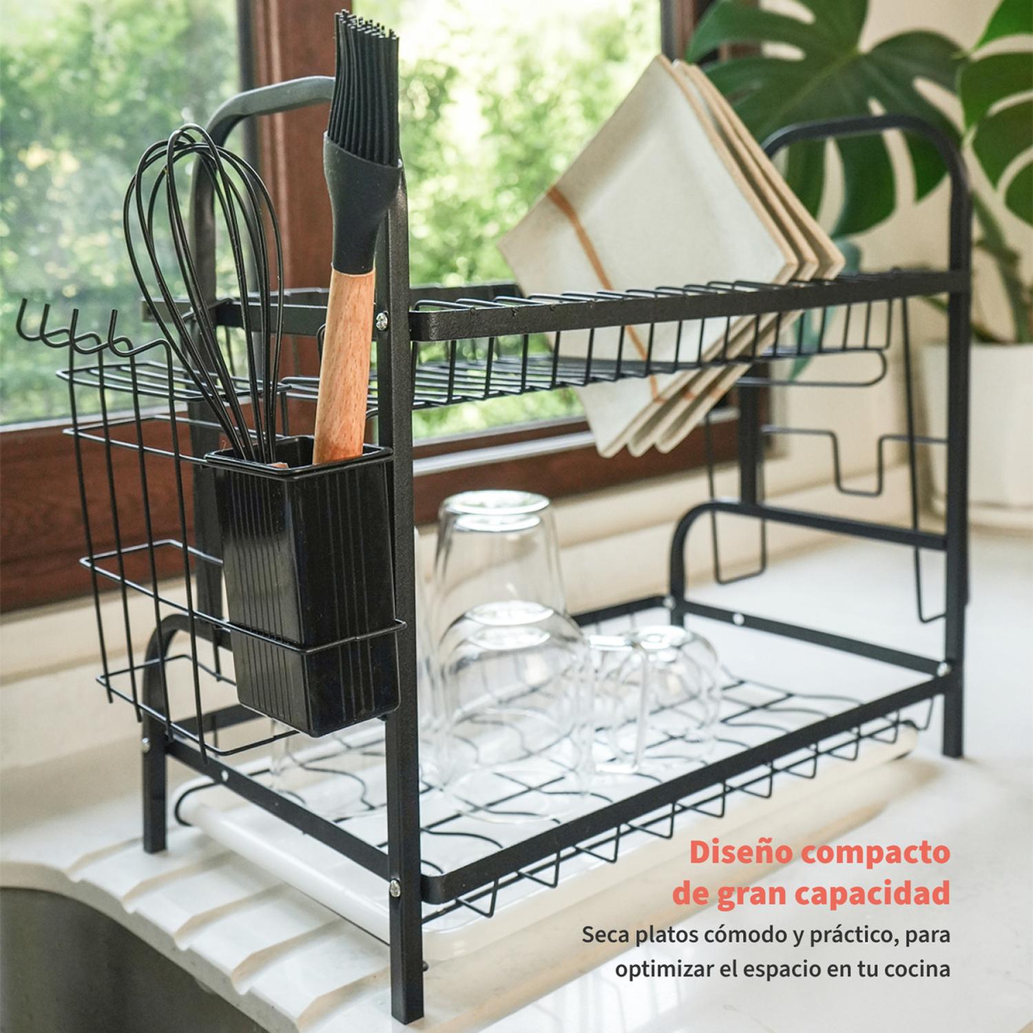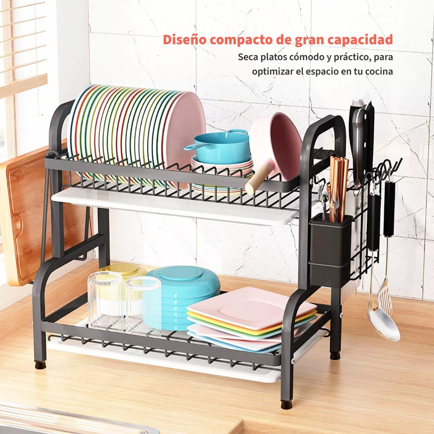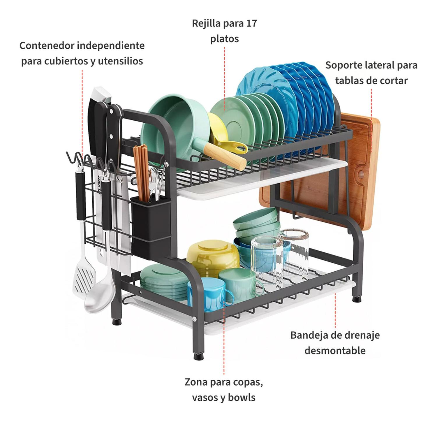Secaplatos Escurridor 2 Niveles 17 Platos Negro Simplit
