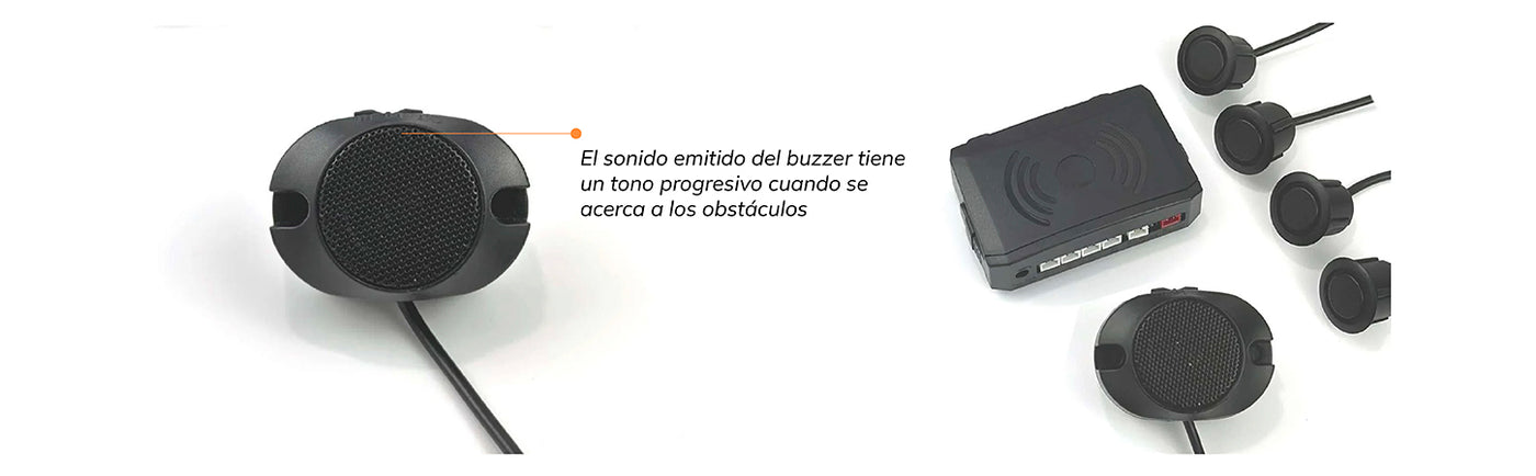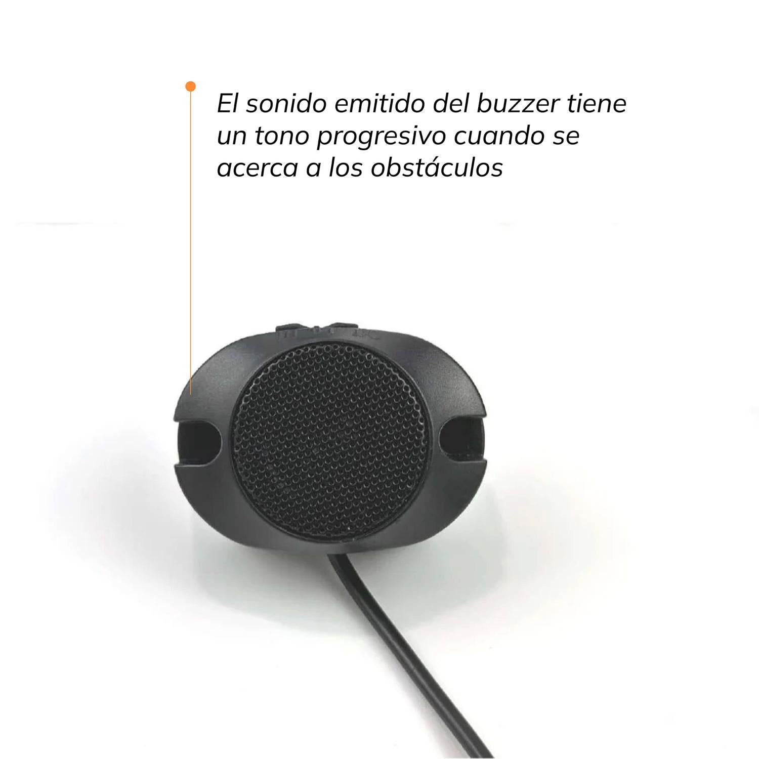 • El sonido emitido del buzzer tiene un tono progresivo cuando se acerca a los obstáculos