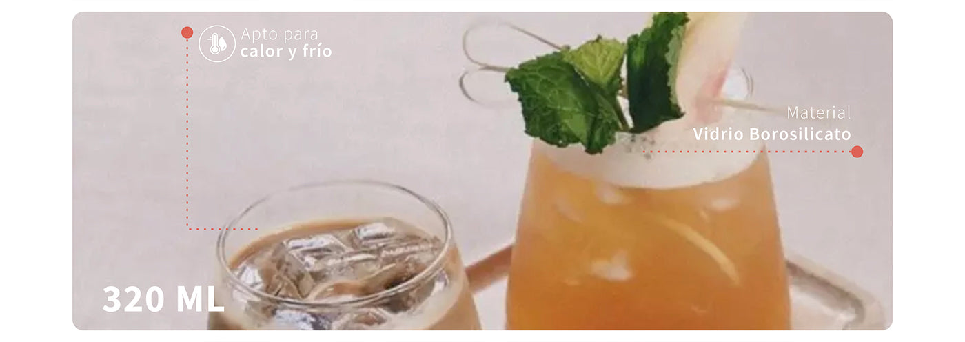 Su tamaño es perfecto para preparar todo tipo de bebidas, solo tienes que elegir tu favorita. Hechos de vidrio borosilicato que los hace más resistentes y aptos para bebidas frías y calientes.
