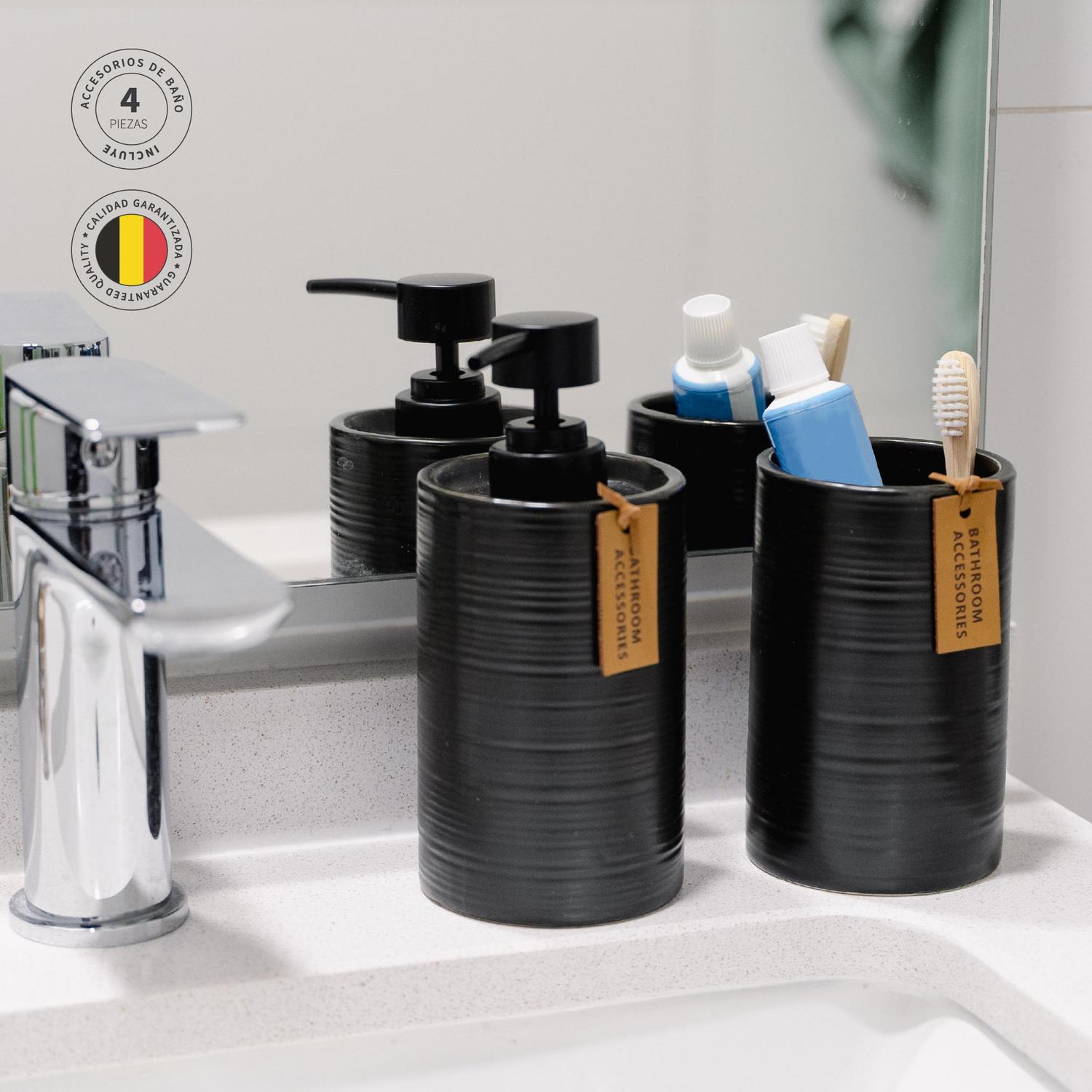 • Incluye: Dispensador de jabón líquido, vaso, vaso para cepillos y jabonera