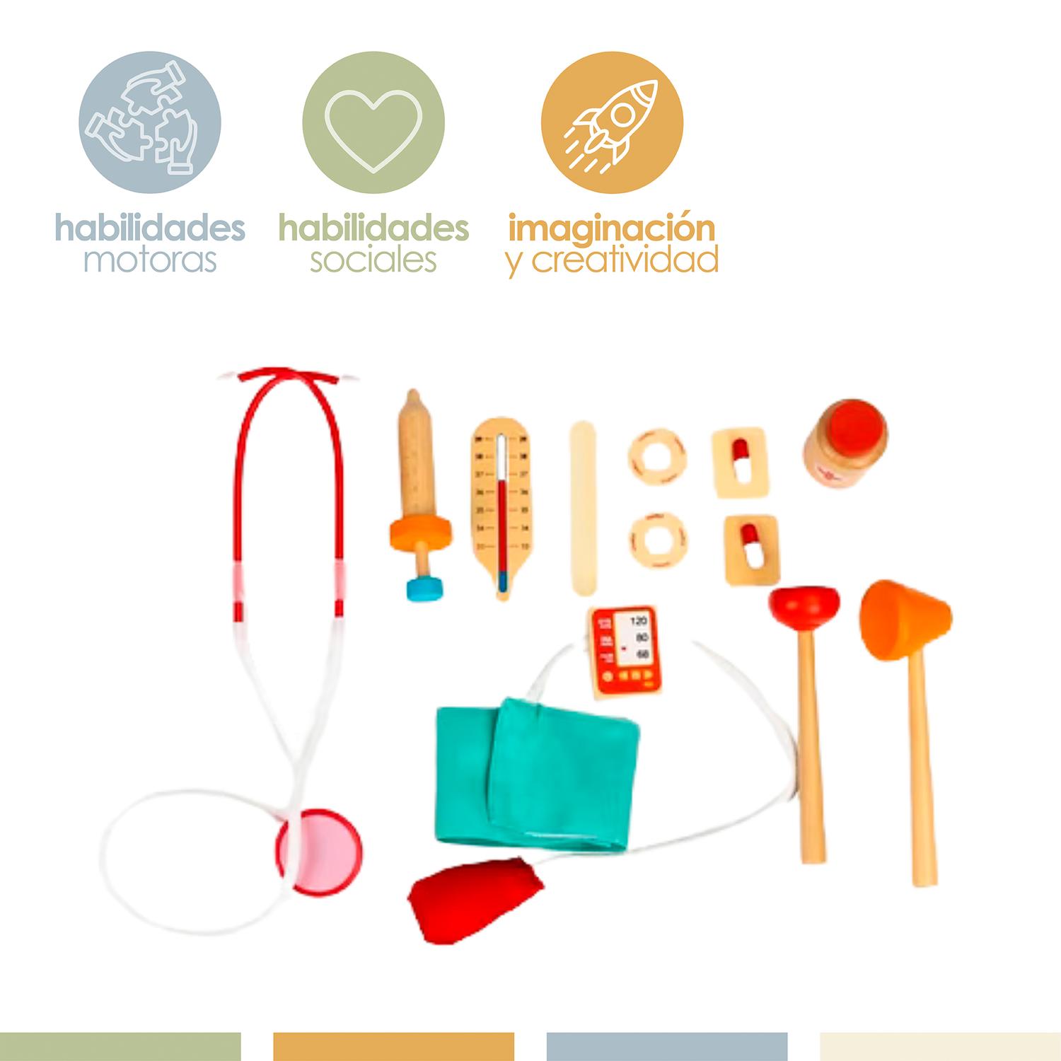 Set Juego de Roles Doctor Niños Madera 12 pcs Bandú