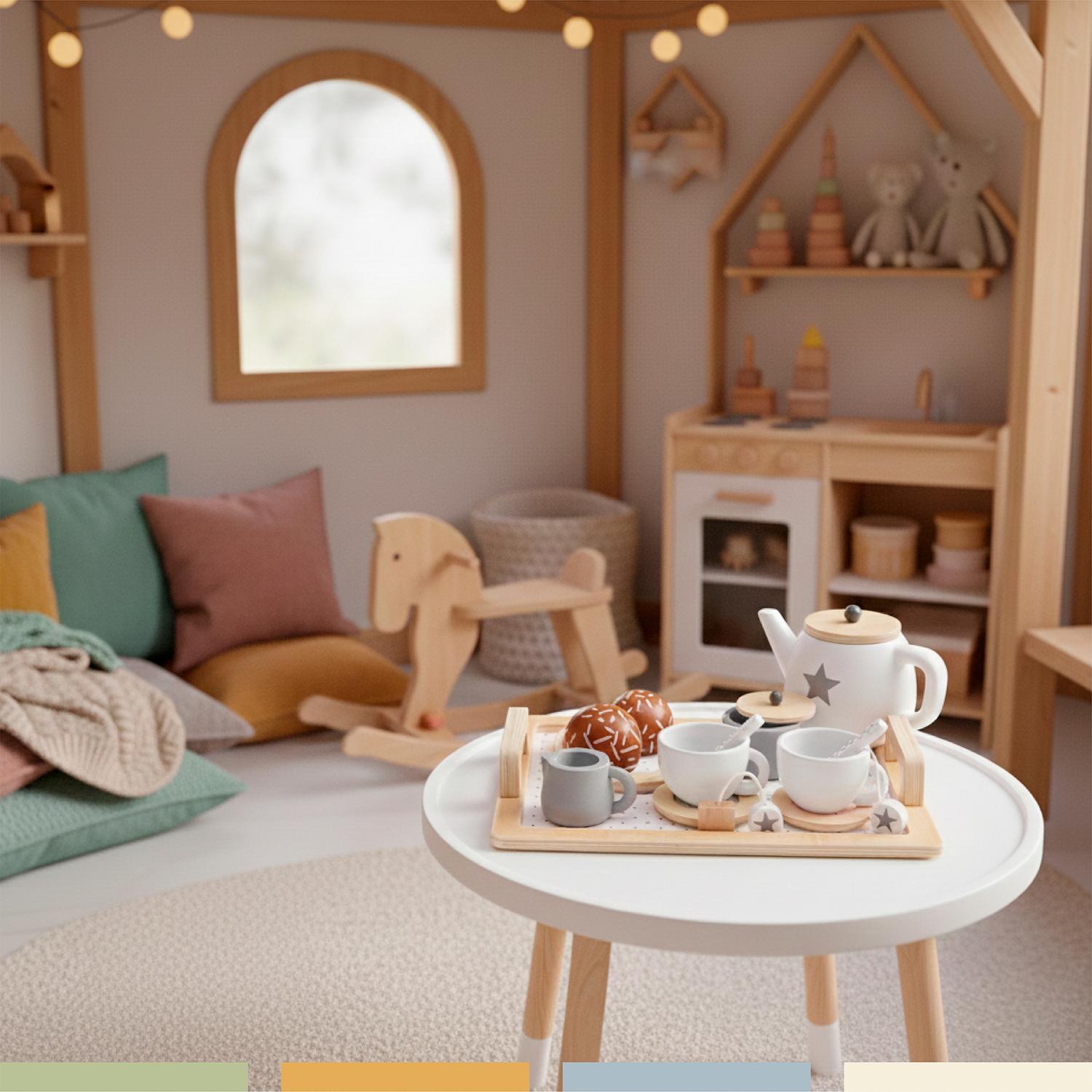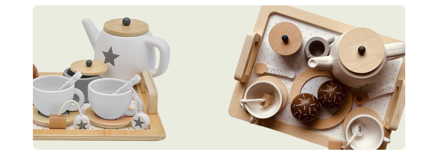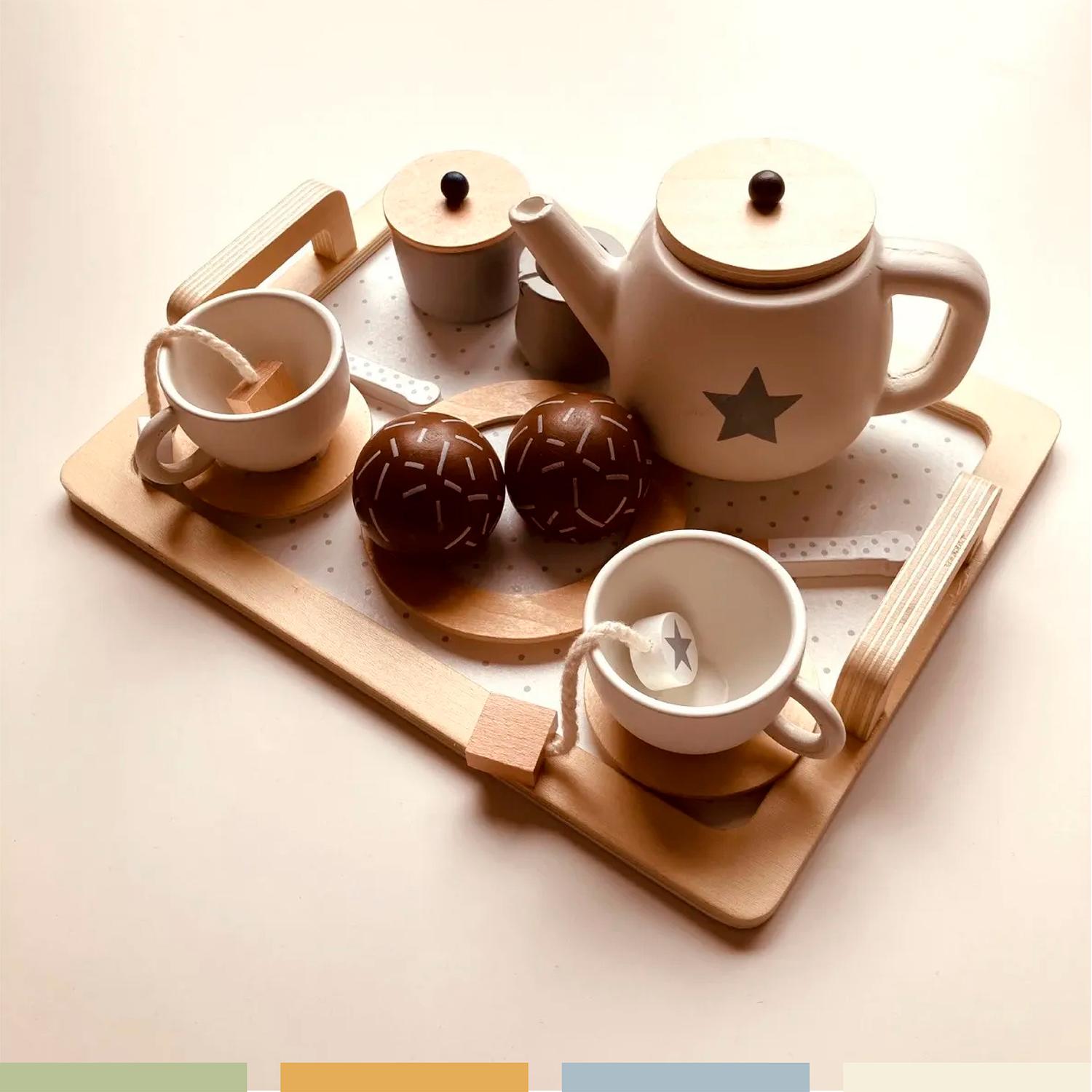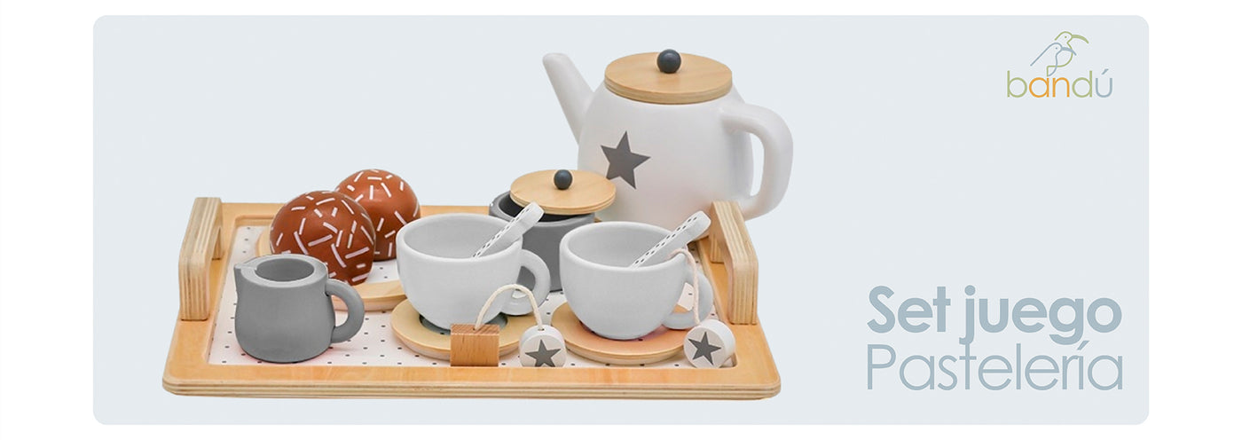 El Set de Té de Madera Bandú invita a niños y niñas a disfrutar de momentos de juego simbólico mientras desarrollan habilidades sociales, motricidad y creatividad. Con 16 piezas cuidadosamente diseñadas, este juego didáctico transforma cualquier rincón en una elegante tarde de té.