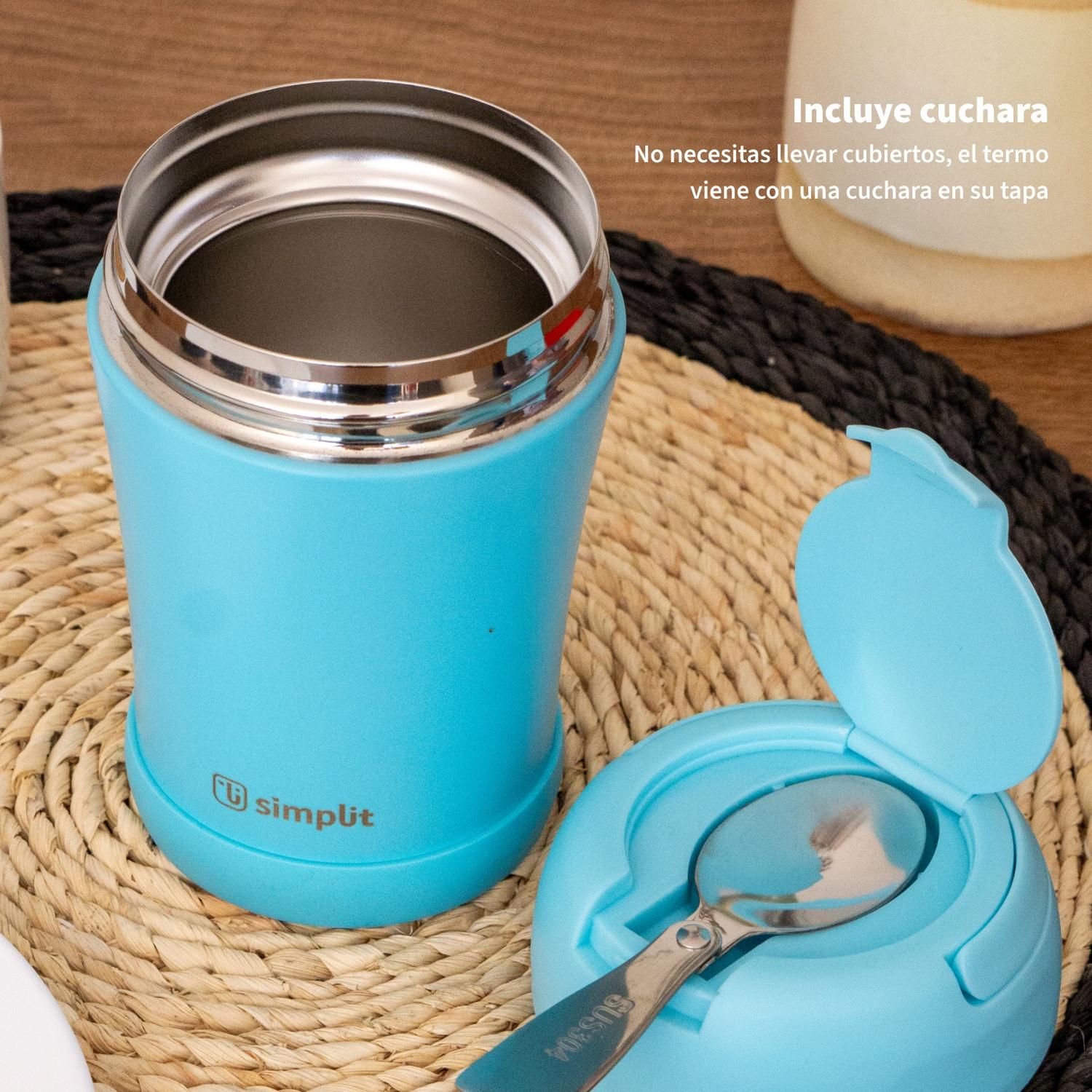 Termo Comida 400ml Azul Cuchara Acero Inox Simplit
