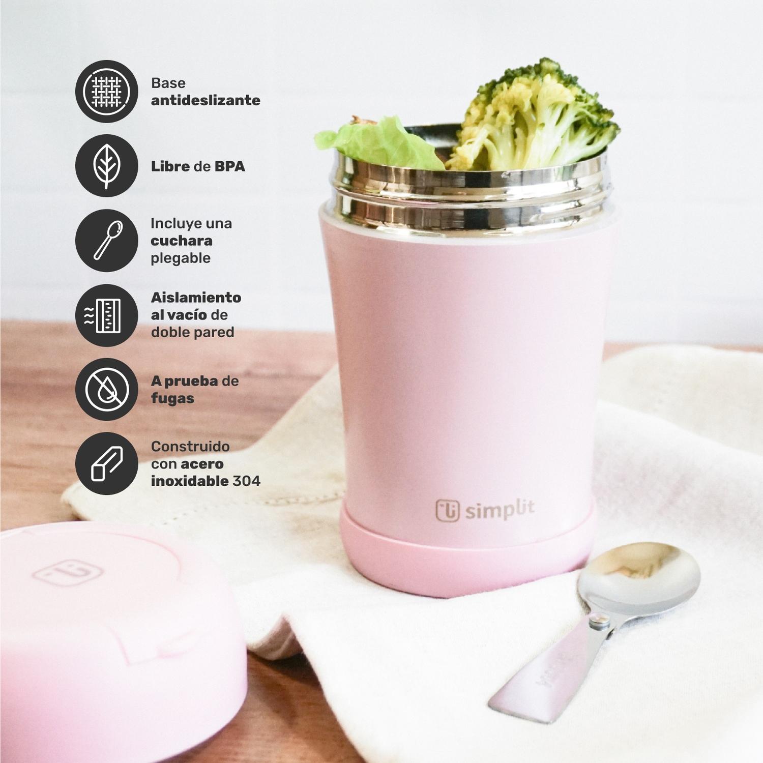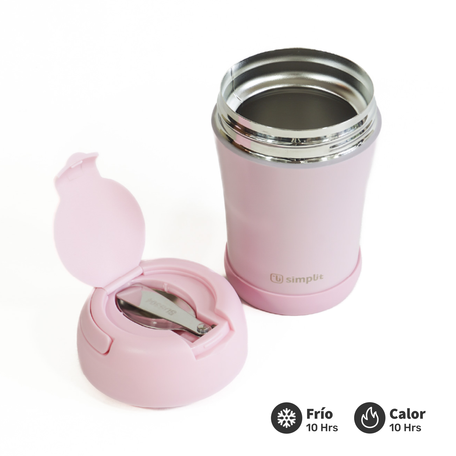 Termo Comida 400ml Rosado Cuchara Acero Inox Simplit