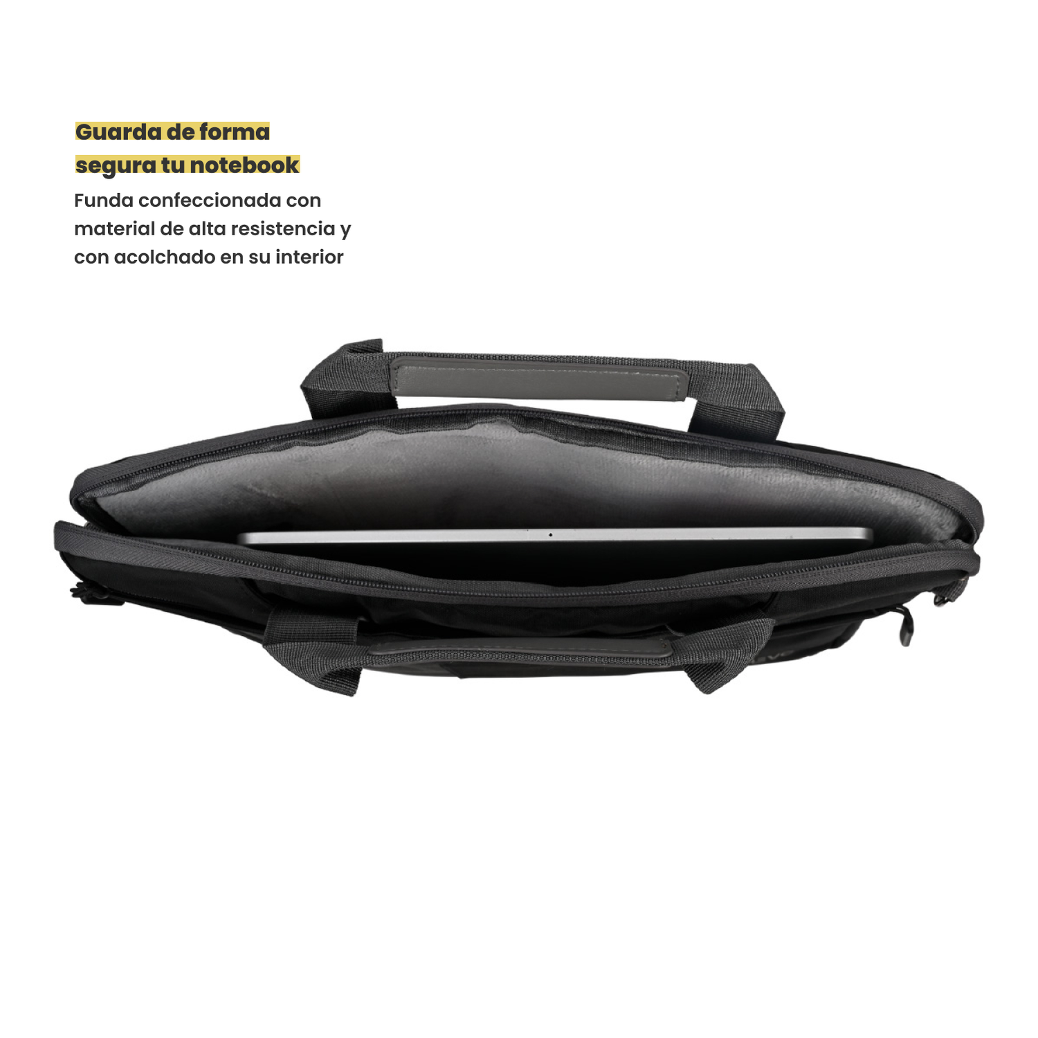 La capacidad de 4 litros de esta funda maletín brinda suficiente espacio para tus pertenencias esenciales, sin abrumarte con un tamaño excesivo. Además, su diseño interior permite acomodar notebooks de hasta 15,6 pulgadas, lo que la convierte en una opción versátil para una amplia gama de dispositivos.